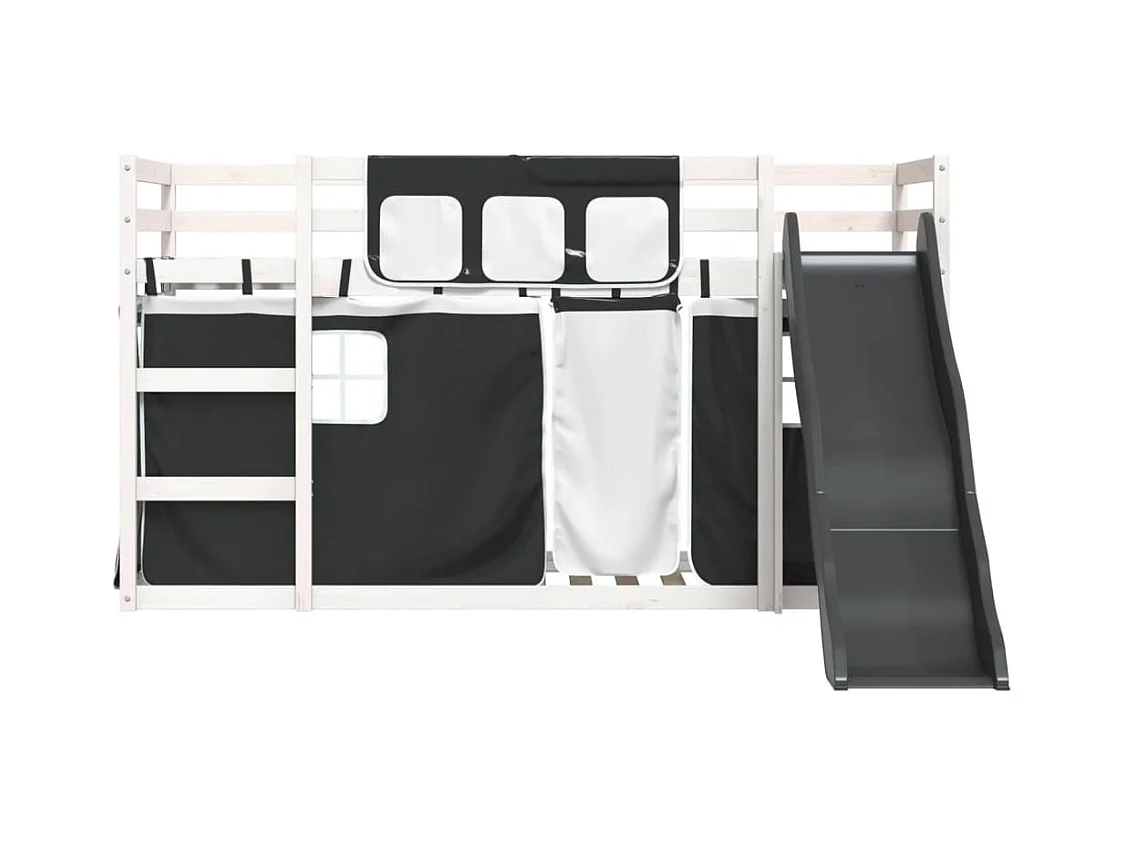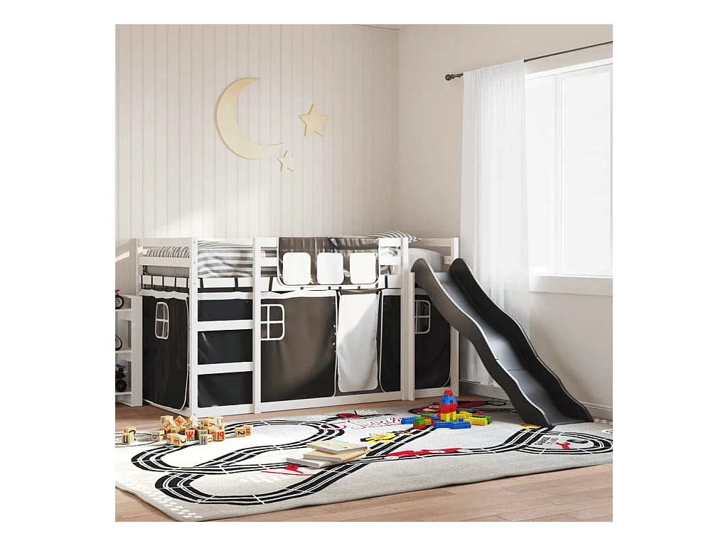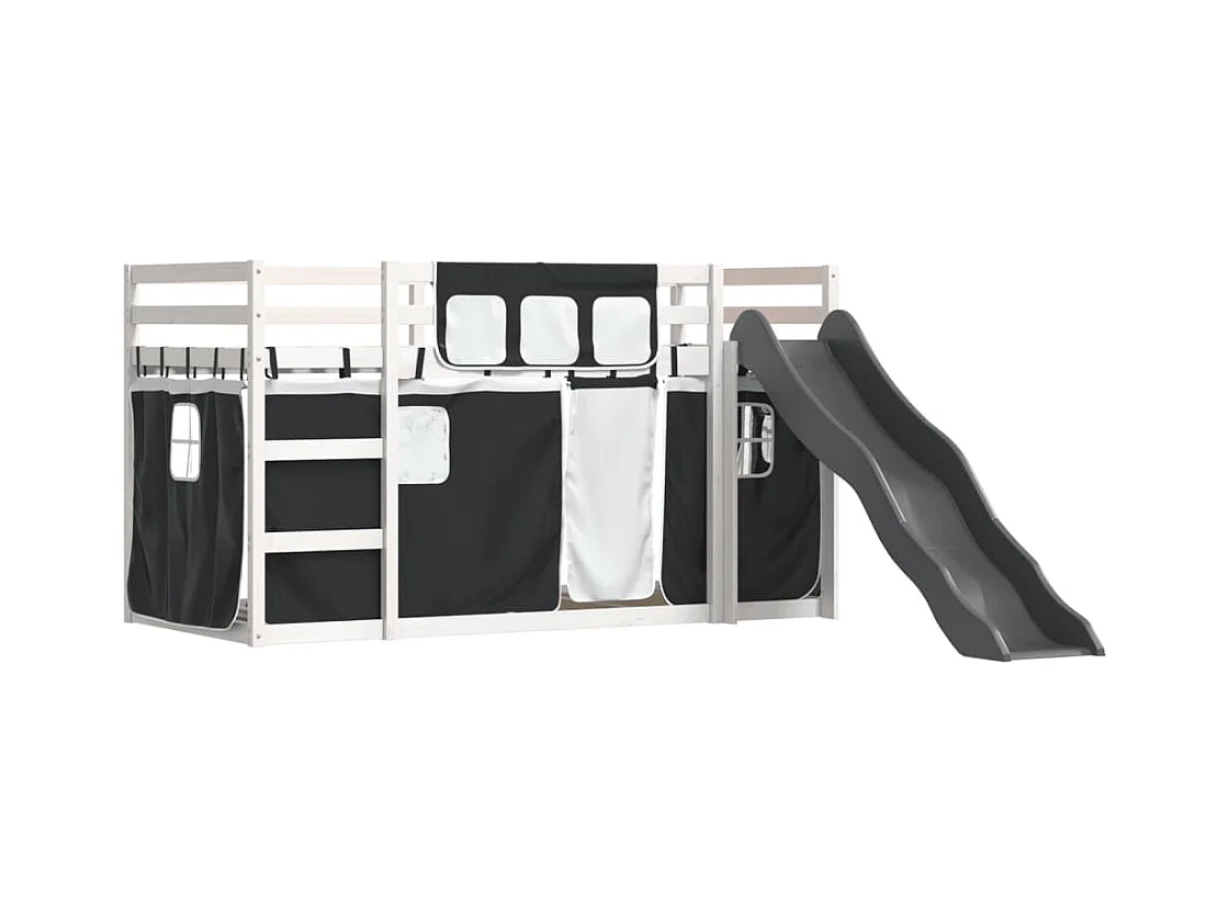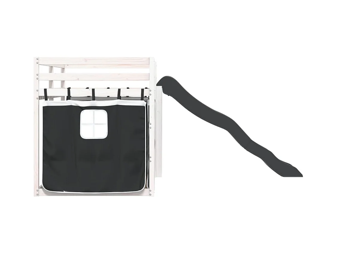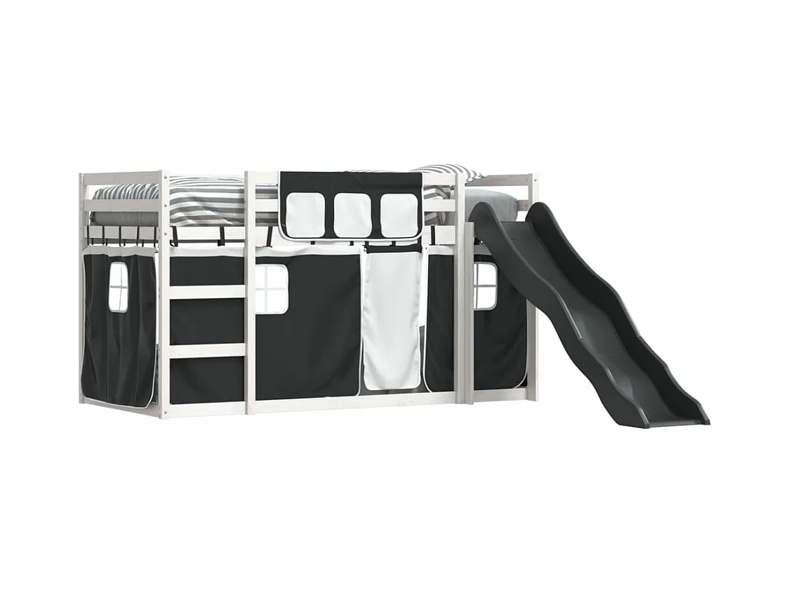 Lit superposé sans matelas avec toboggan blanc noir 90x200 cm