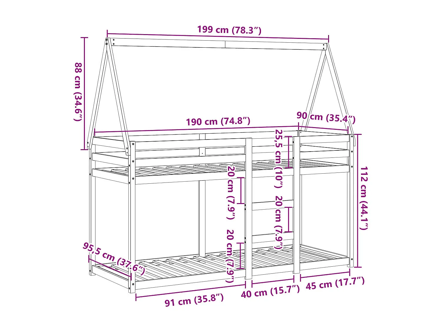 Lit superposé sans matelas blanc 90x190 cm bois de pin massif