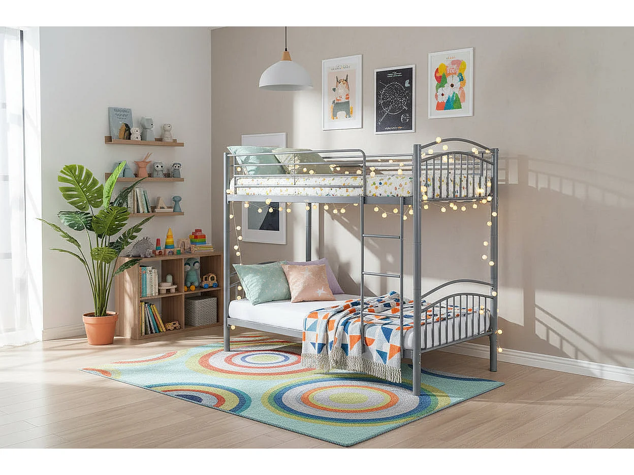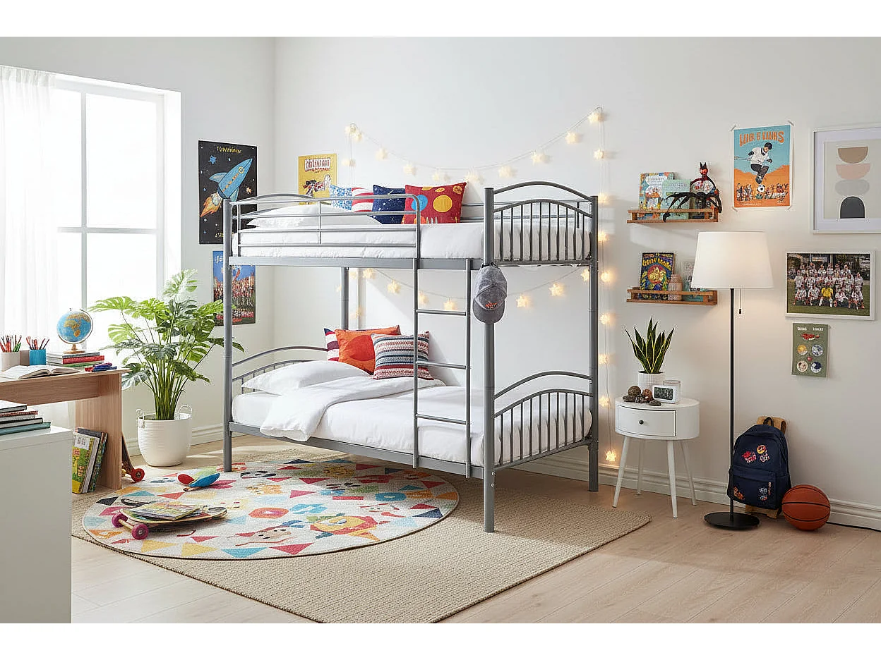 Lit superposé séparable métal gris 2x90x190 cm ALICE