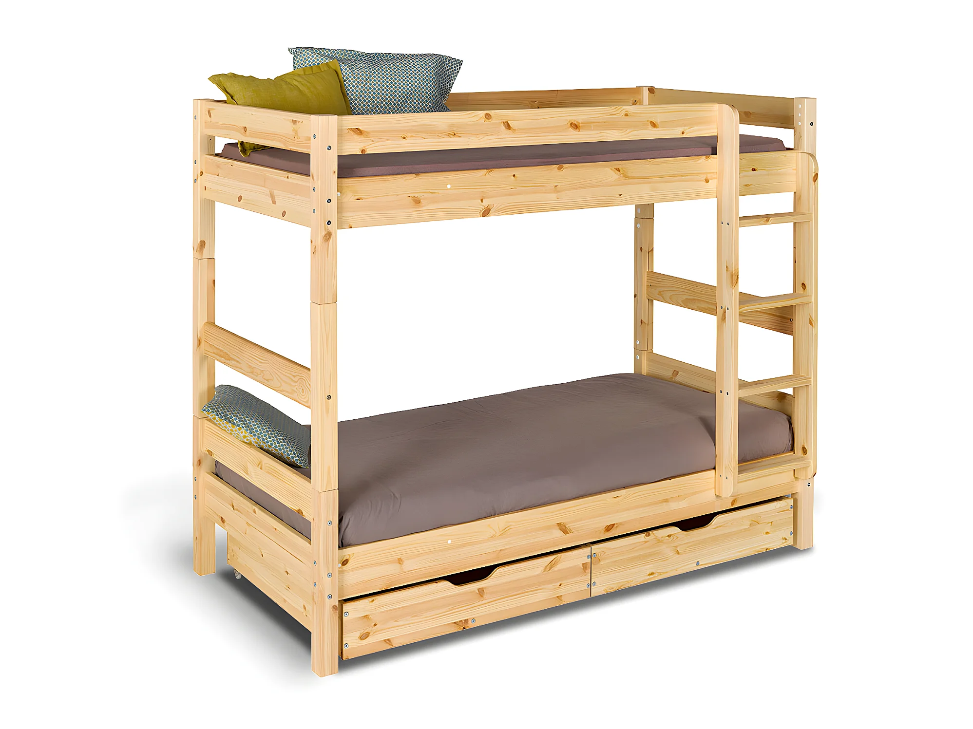 Pack lit superposé séparable avec tiroirs 90x190 cm bois massif bois naturel AARON