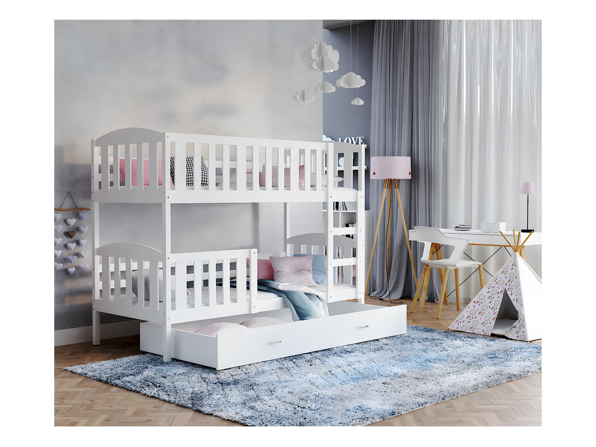 Lit Superposé Teo 90x190 Blanc - blanc Livré avec sommiers, tiroir et matelas en mousse de 7cm