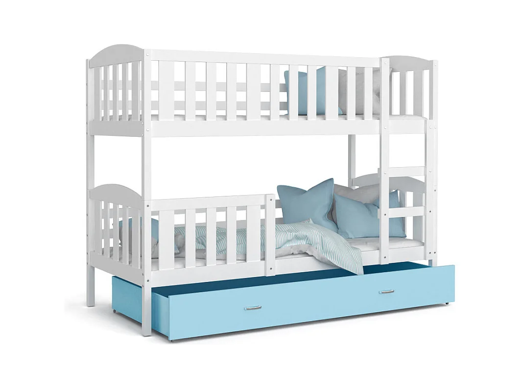 Lit Superposé Teo 90x190 Blanc - bleu Livré avec sommiers, tiroir et matelas en mousse de 7cm