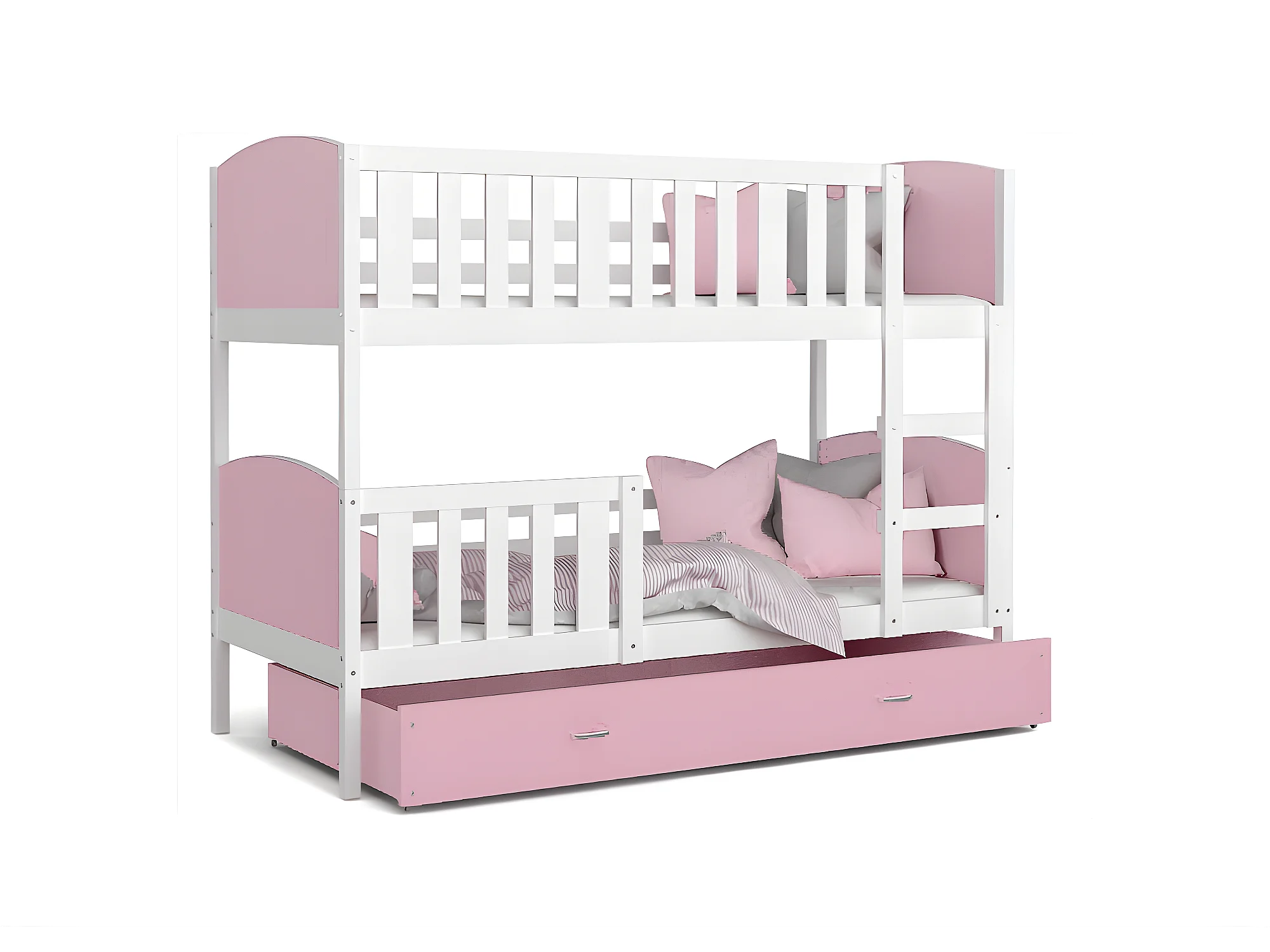 Lit Superposé Tomy 90x190 Blanc - rose Livré avec sommiers, tiroir et matelas en mousse de 7cm