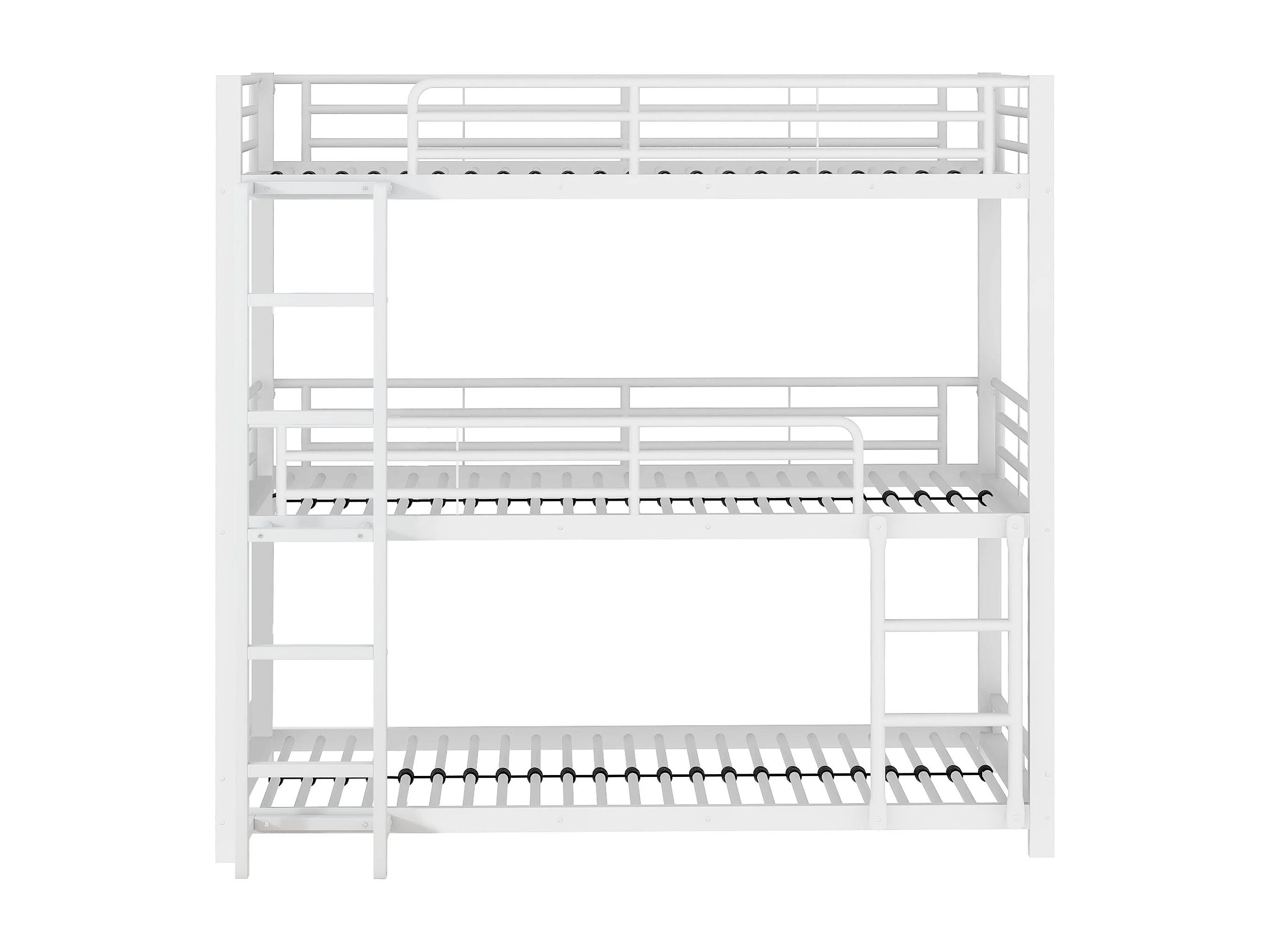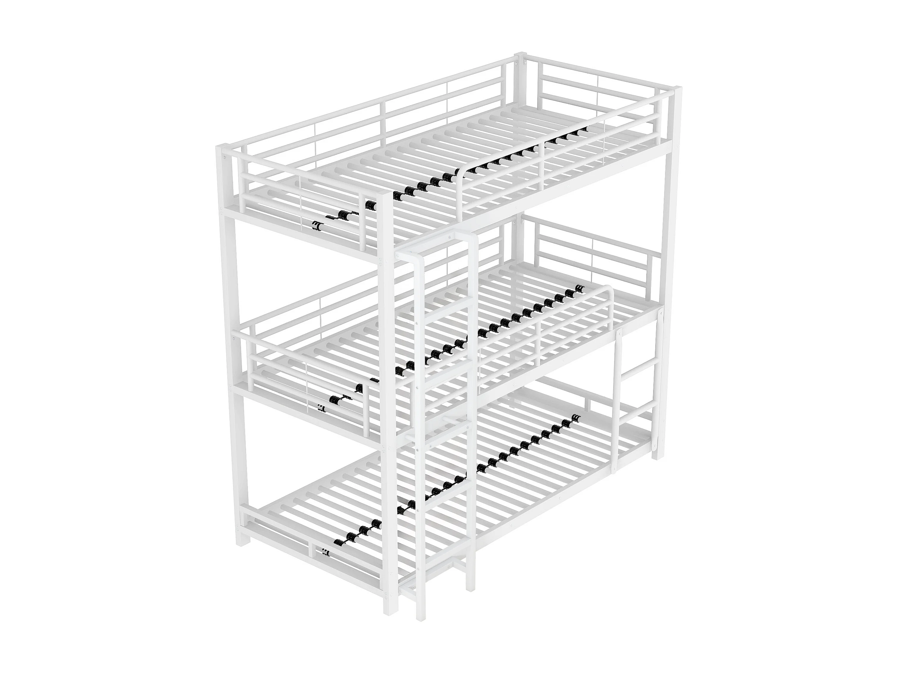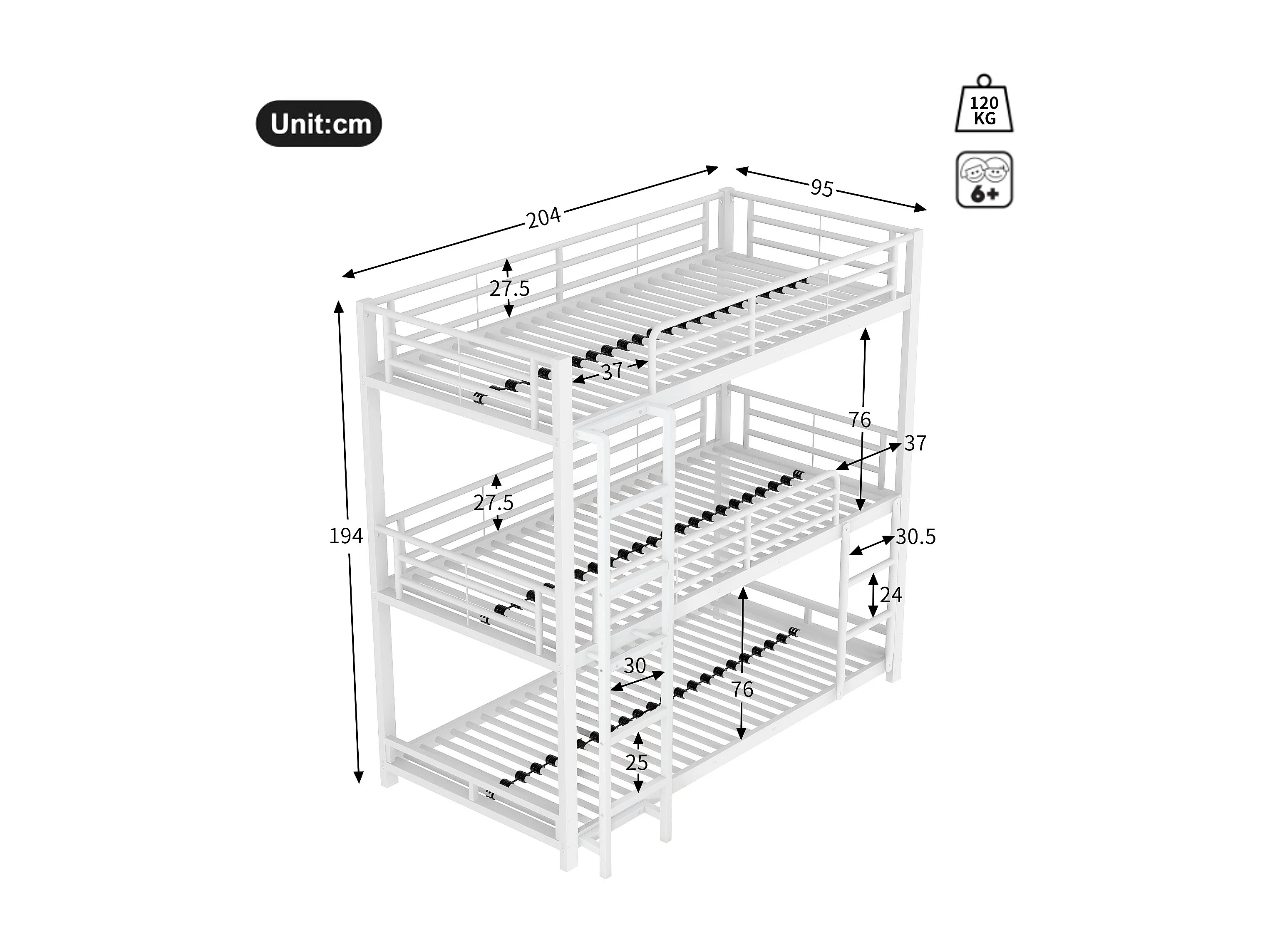 Lit superposé triple 90x200 cm - Lit enfant en métal - Blanc