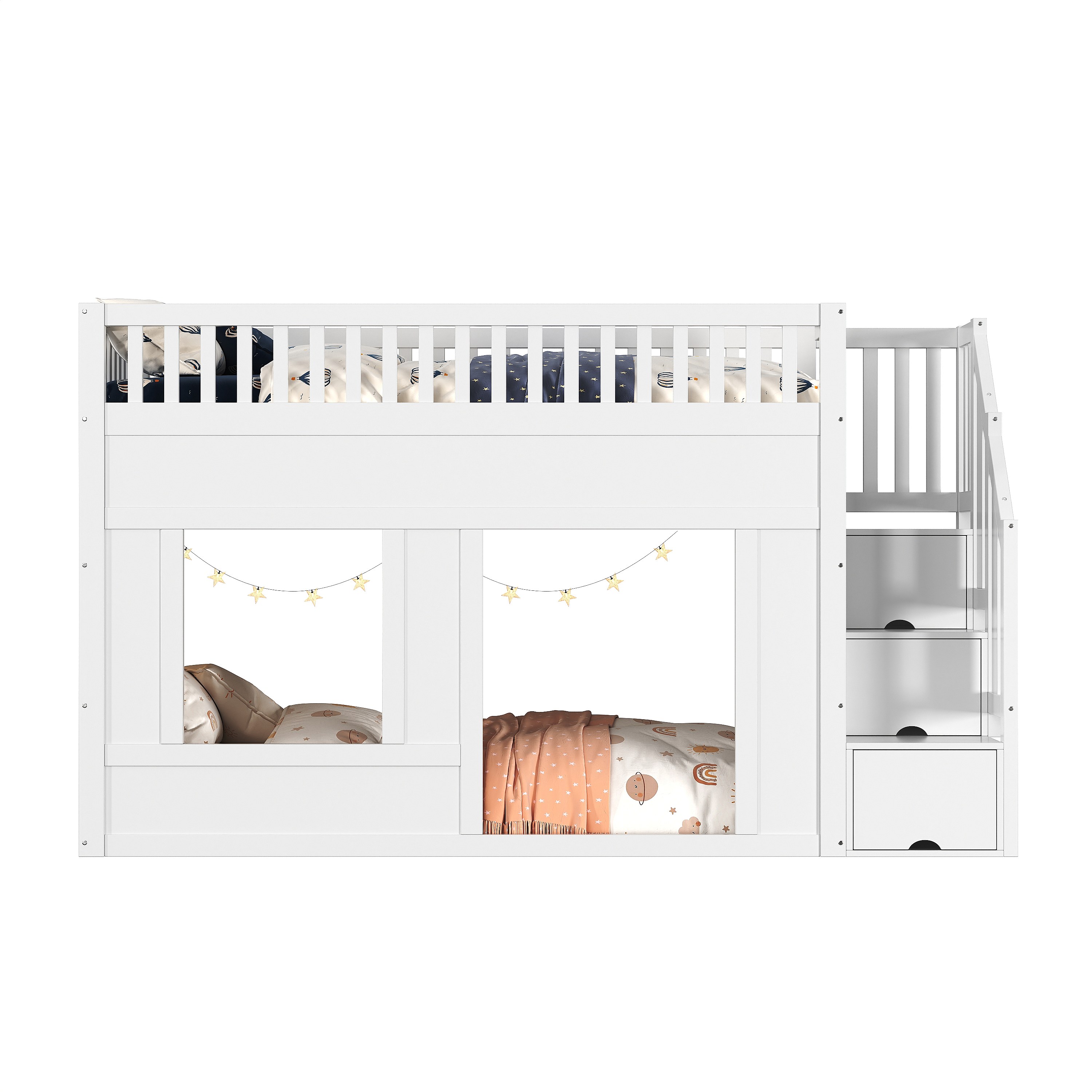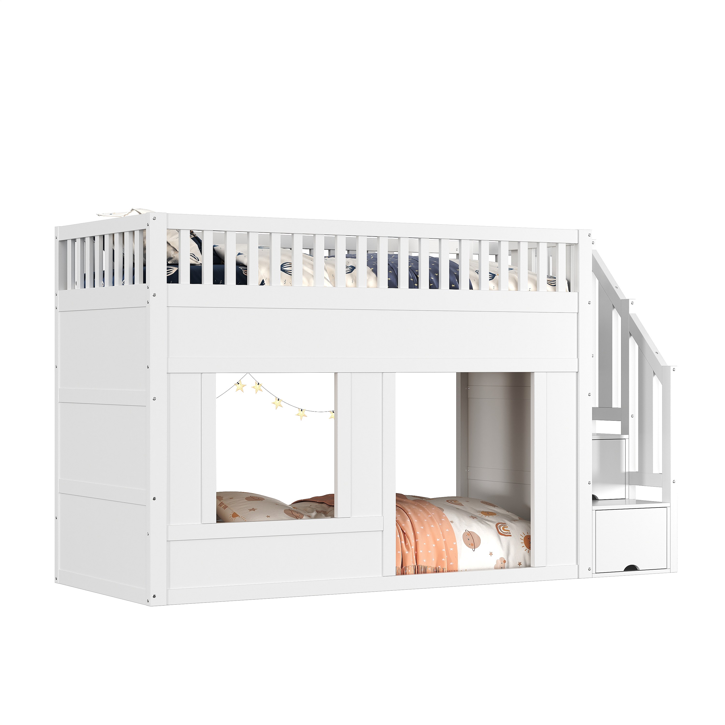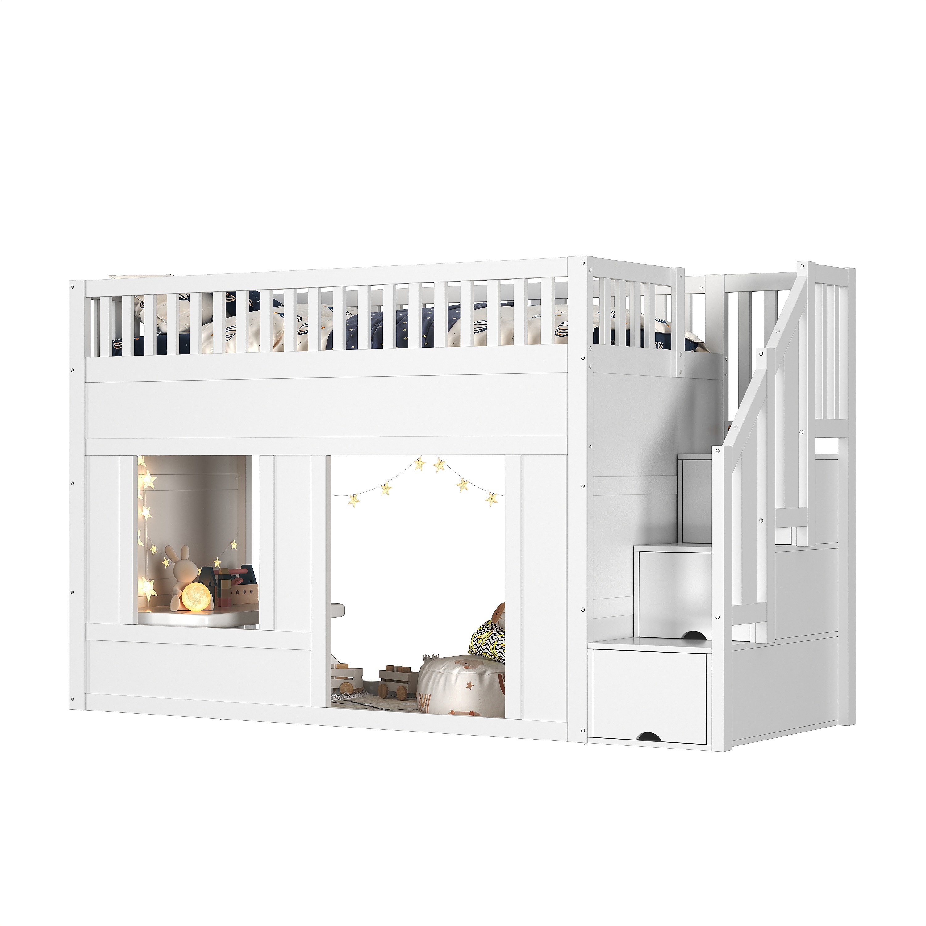 Lit superposés pour enfant - 2 x 90 x 200 cm - avec escalier de rangement - sans matelas - bois - blanc