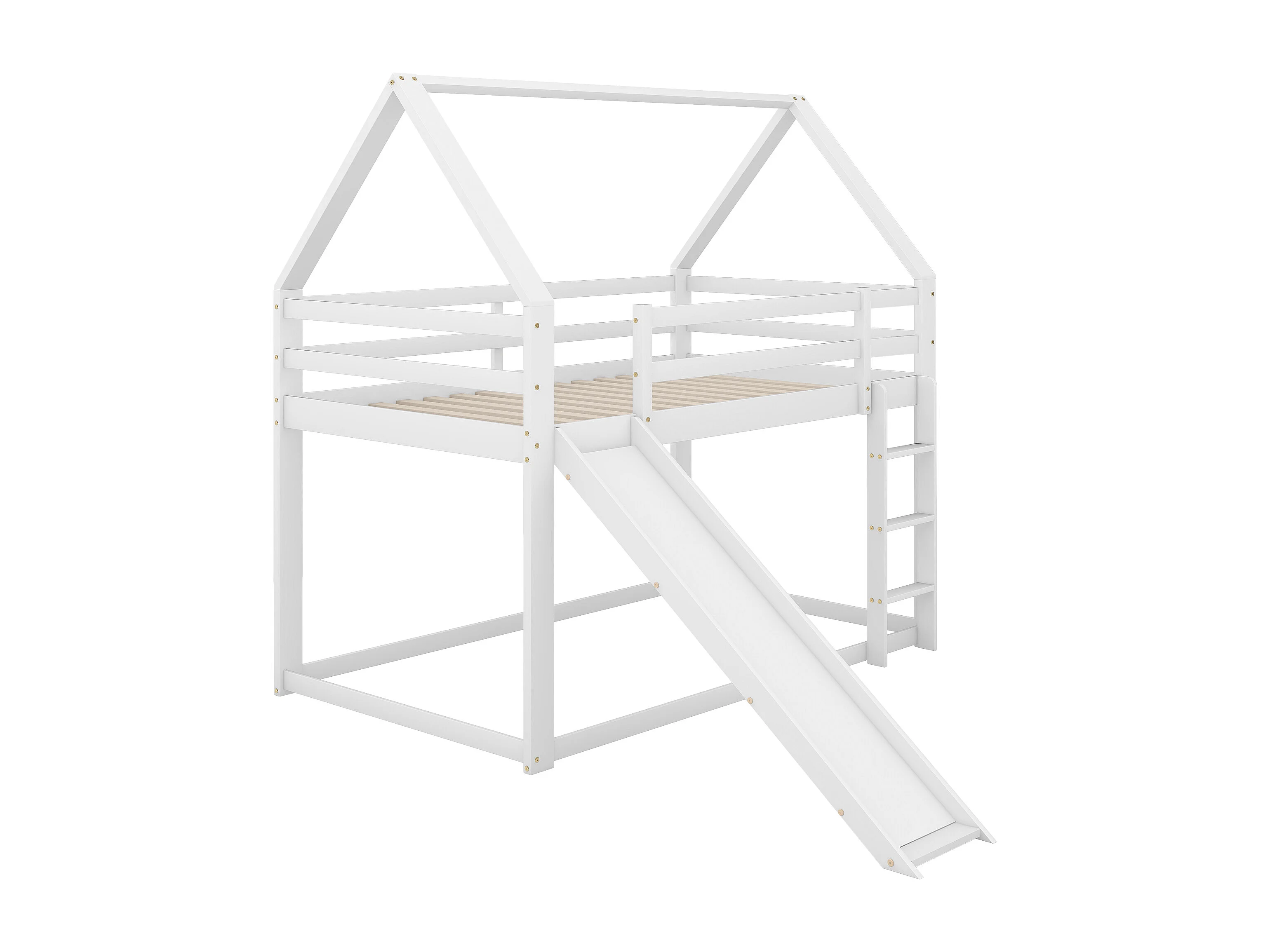 lit superposés pour enfant - 2 x 90 x 200 cm - avec toboggan + échelle - bois - blanc