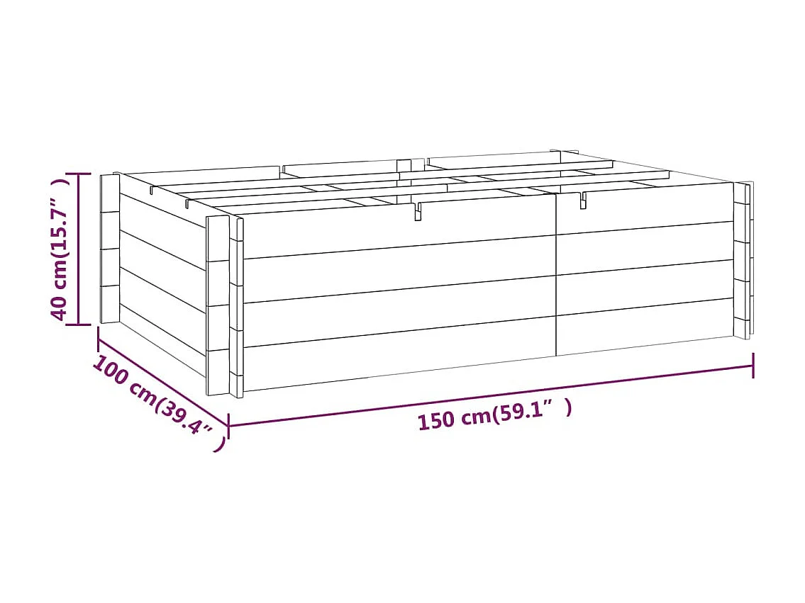Jardinera elevado jardín valla madera impregnada pino 150x50x50cm ES67708