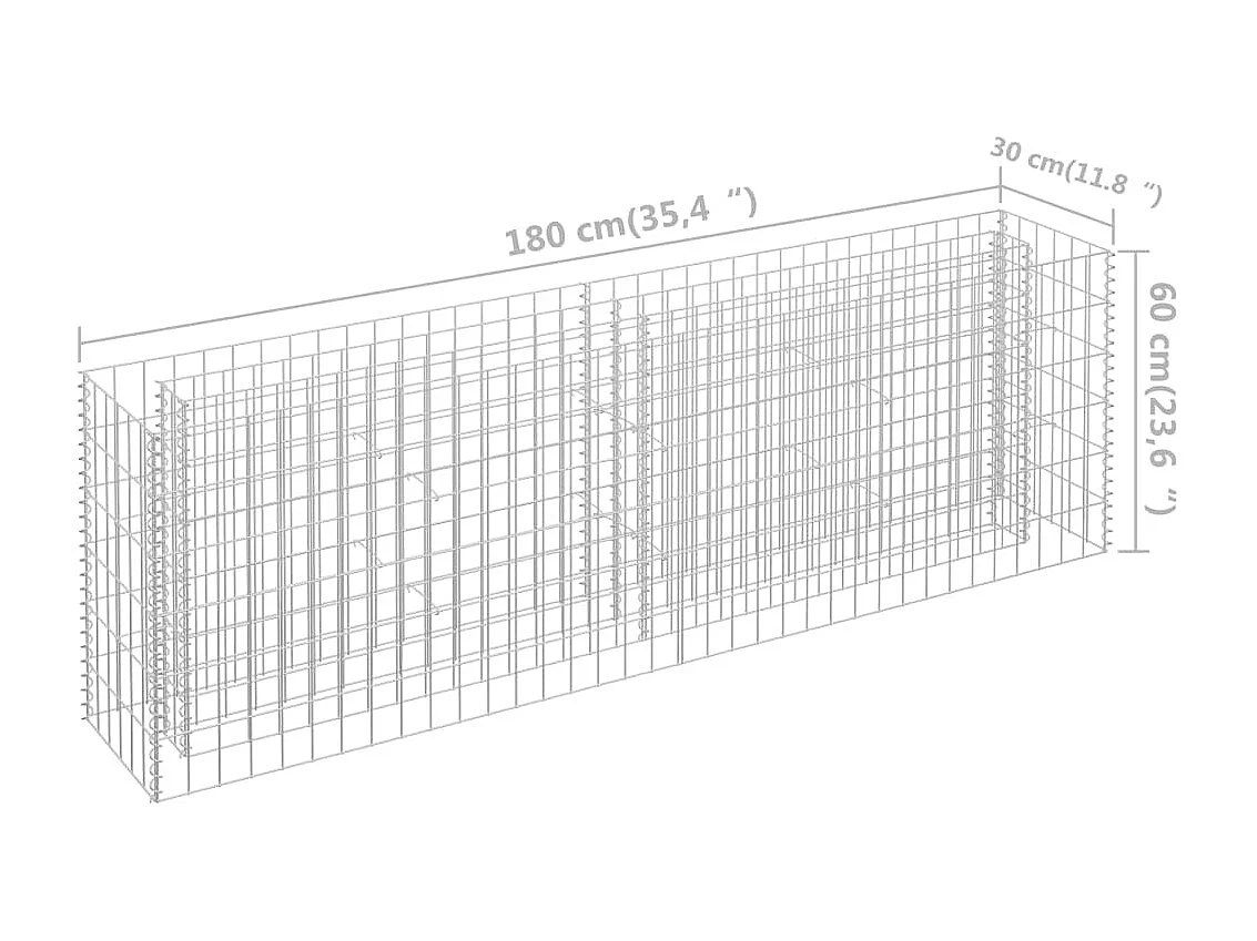 Lit surélevé à gabion Acier galvanisé 180x30x60 cm