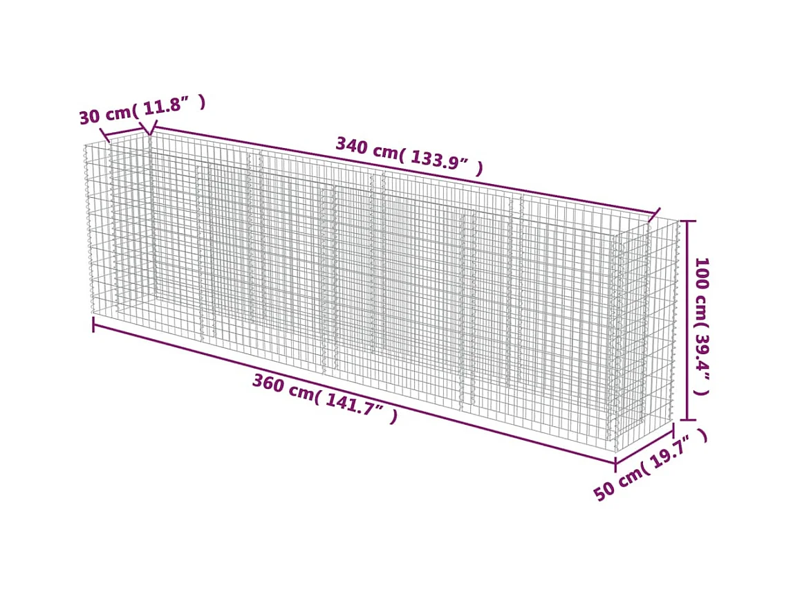 Lit surélevé à gabion Acier galvanisé 360x50x100 cm