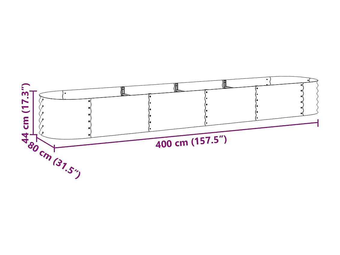 Lit surélevé de jardin 400x80x44 cm Acier galvanisé Argenté