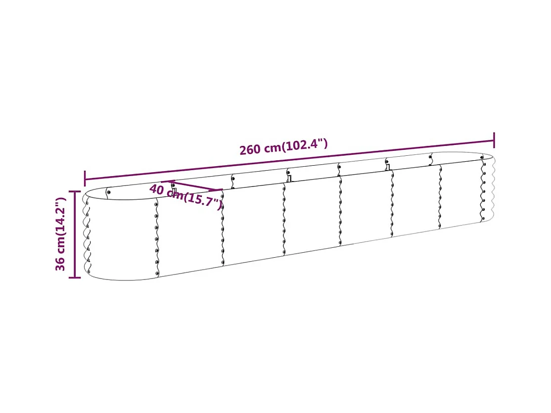 Lit surélevé de jardin Acier enduit de poudre 260x40x36 cm Vert