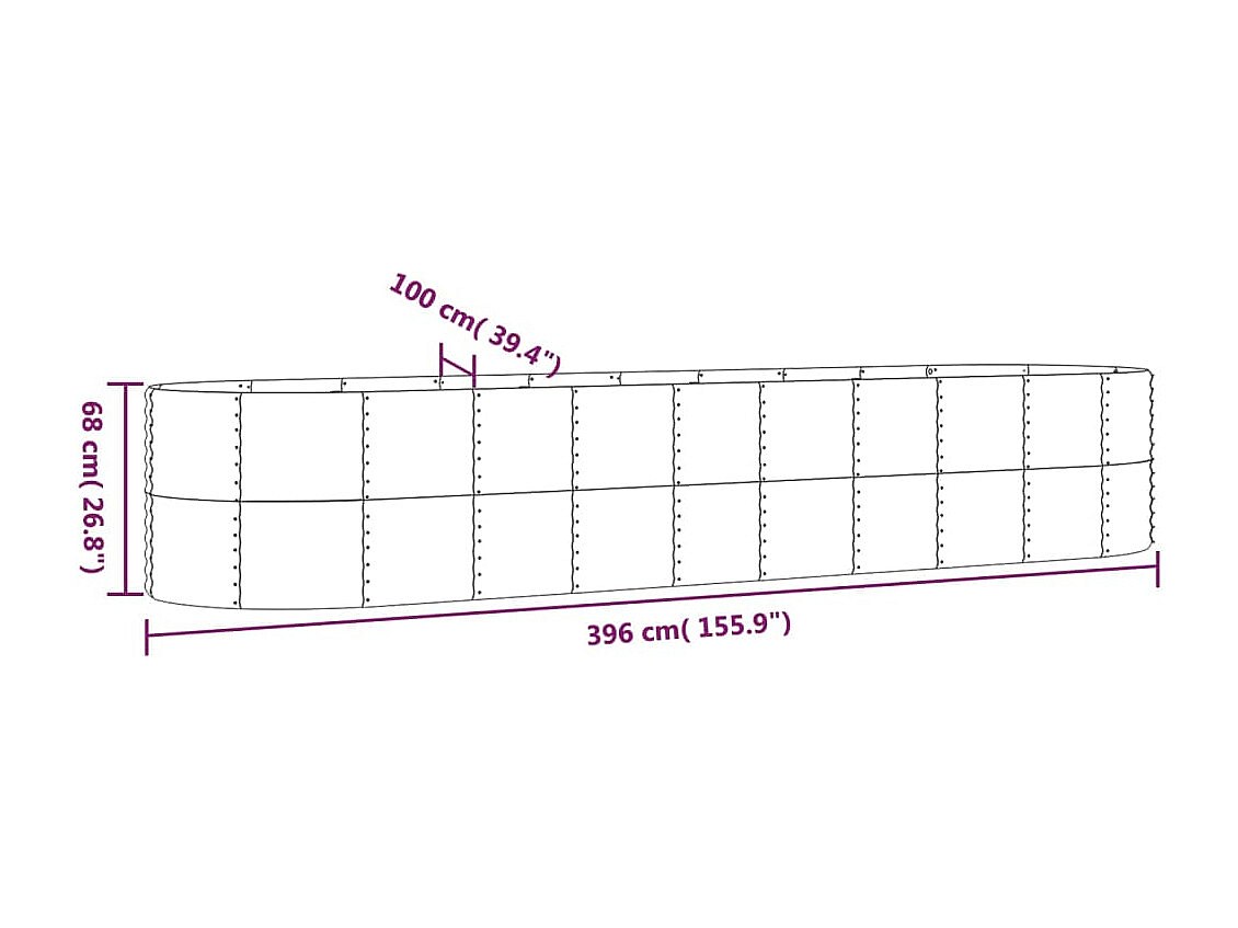 Lit surélevé de jardin Acier enduit de poudre 396x100x68cm gris