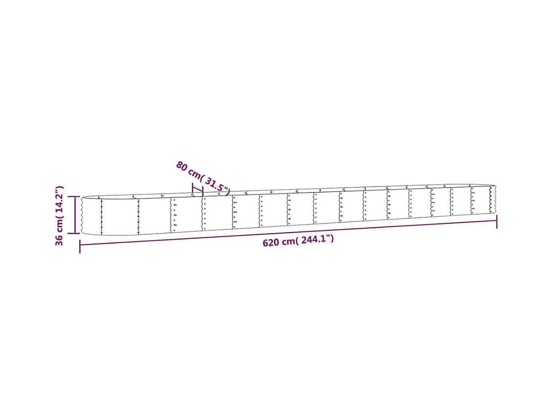 Lit surélevé de jardin Acier enduit de poudre 620x80x36 cm Vert