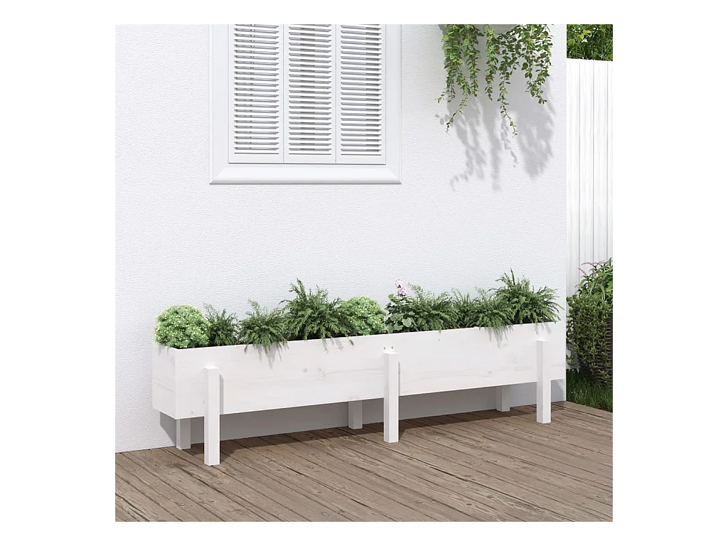 Jardinera elevado jardín con valla madera pino blanco 200x30x30cm ES47389