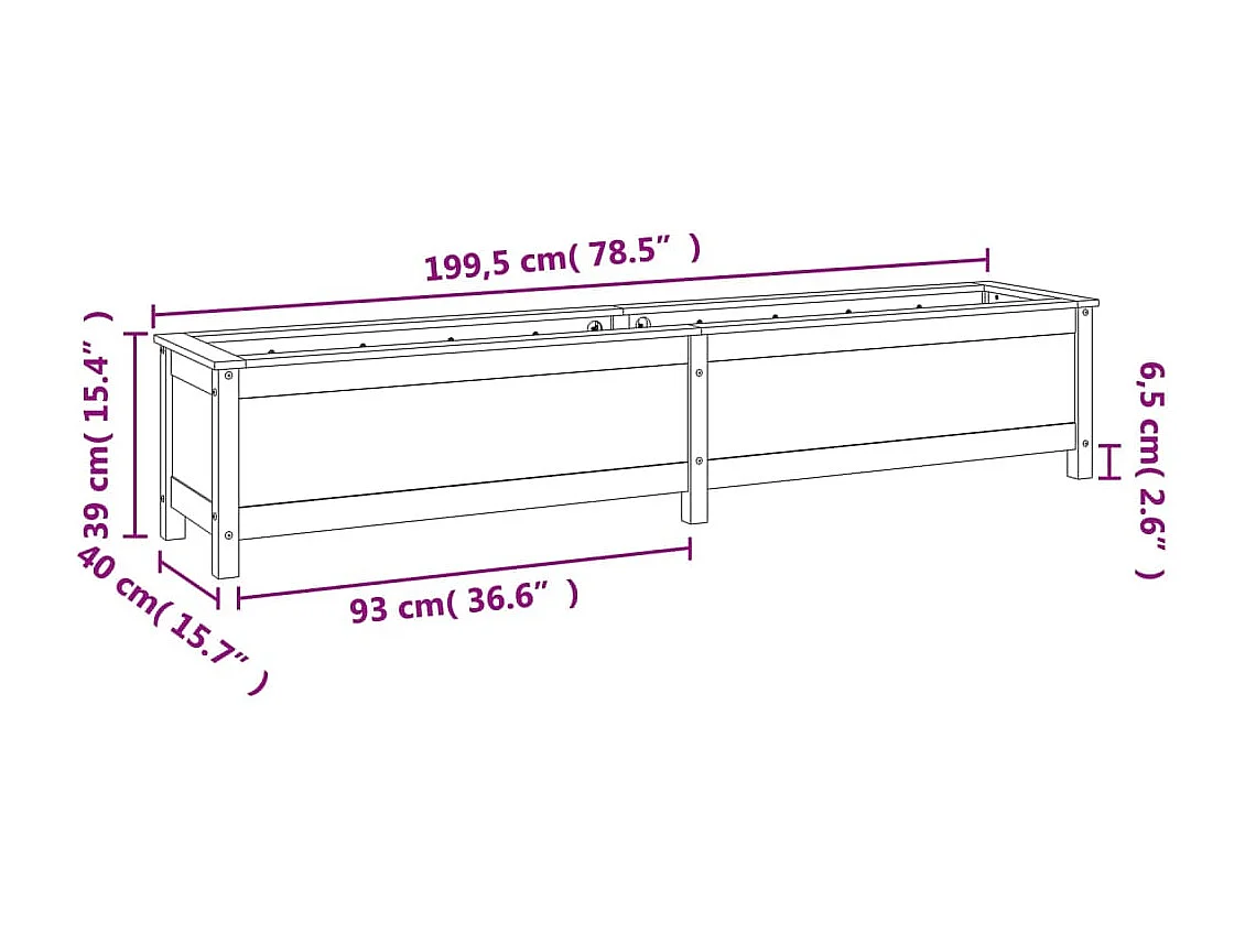 Lit surélevé de jardin blanc 199,5x40x39 bois de pin massif