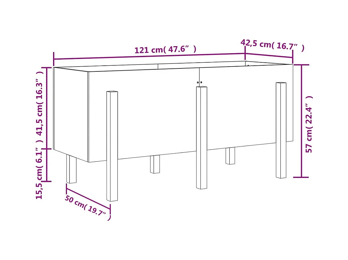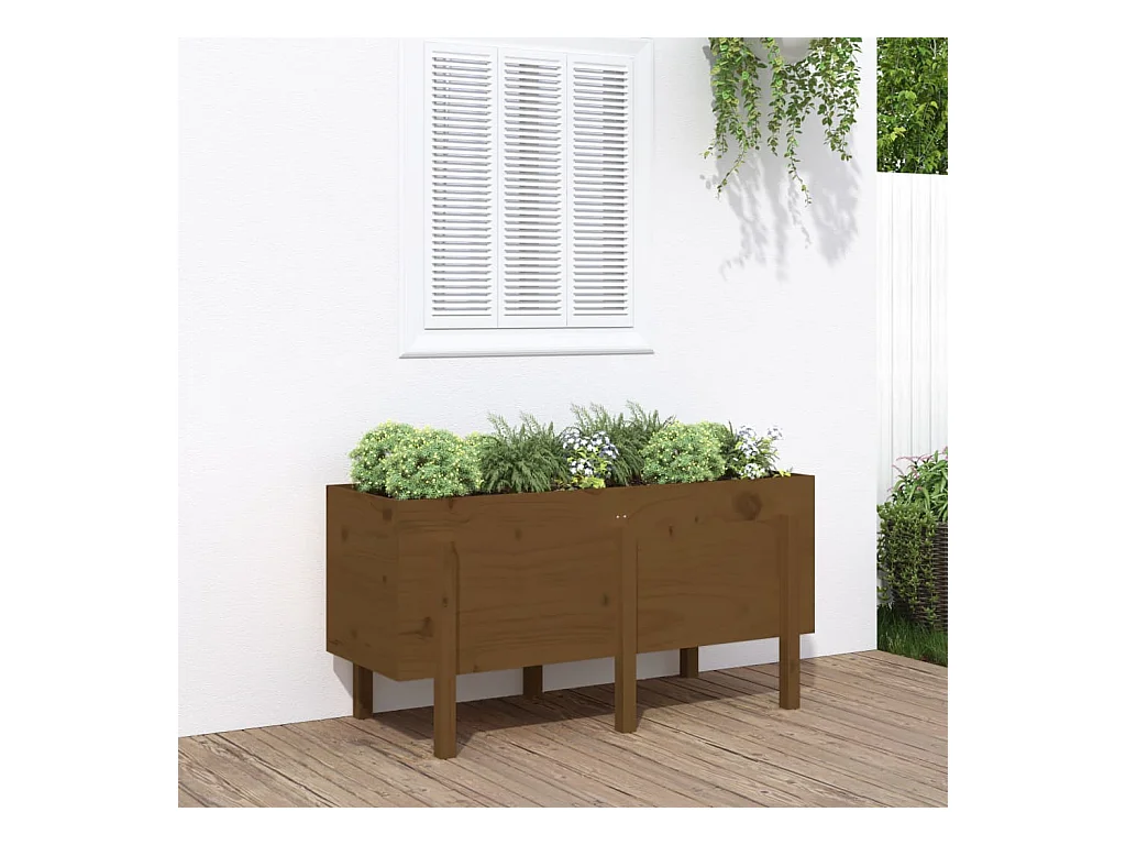 Lit surélevé de jardin brun miel 121x50x57 bois de pin massif