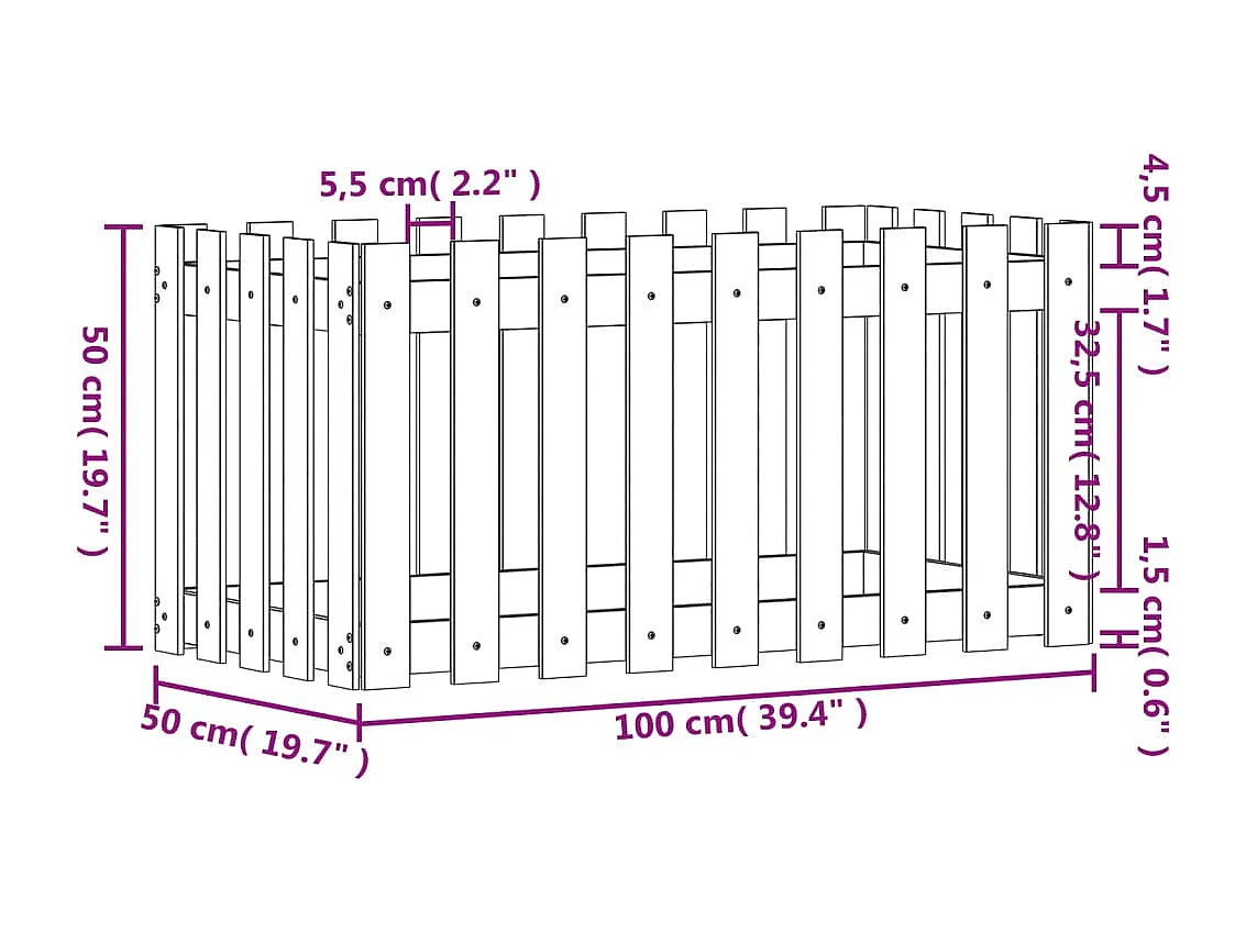 Lit surélevé de jardin design de clôture 100x30x30 pin massif