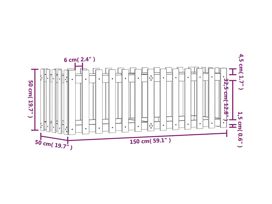 Lit surélevé de jardin design de clôture bois de pin imprégné