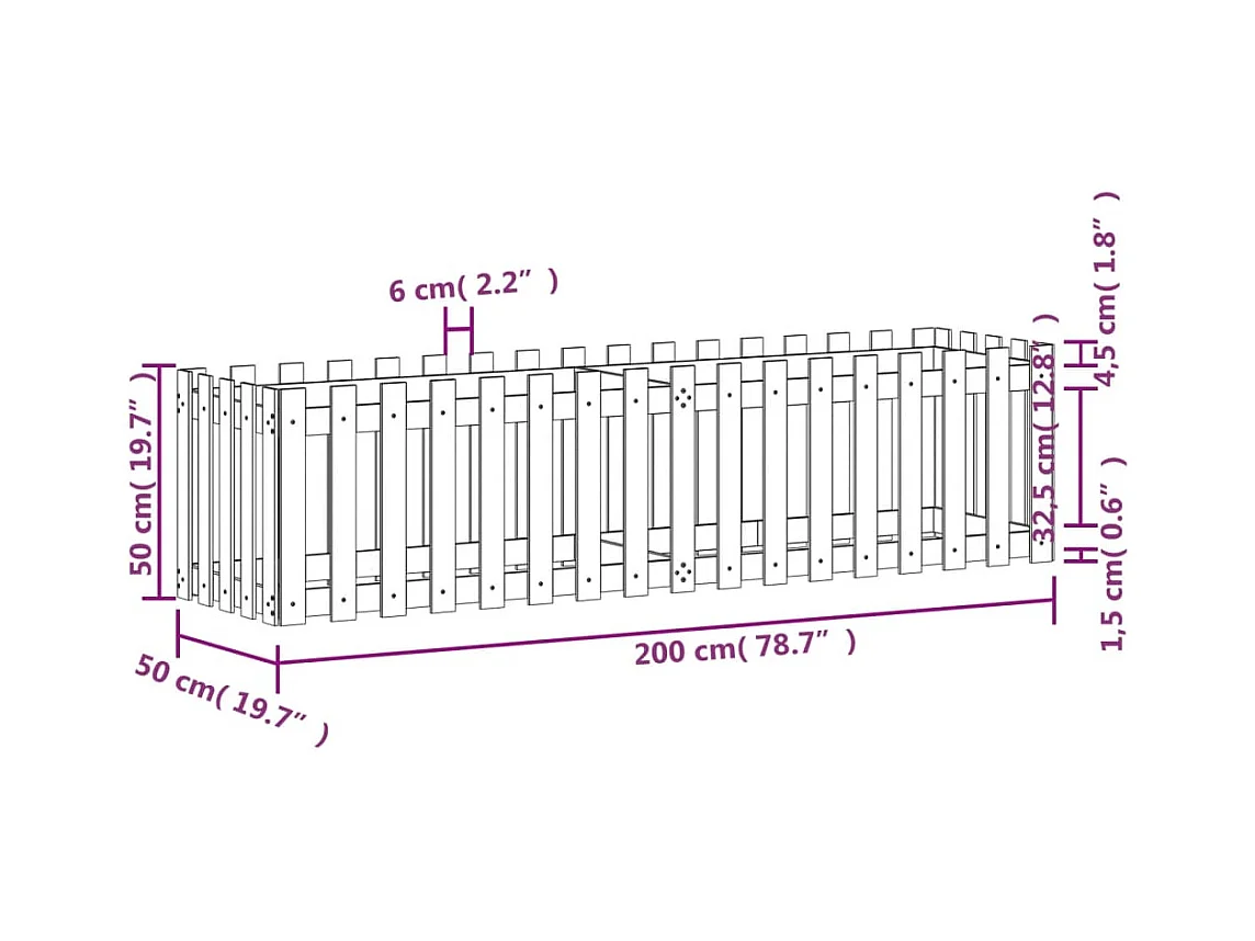 Lit surélevé de jardin design de clôture bois de pin imprégné