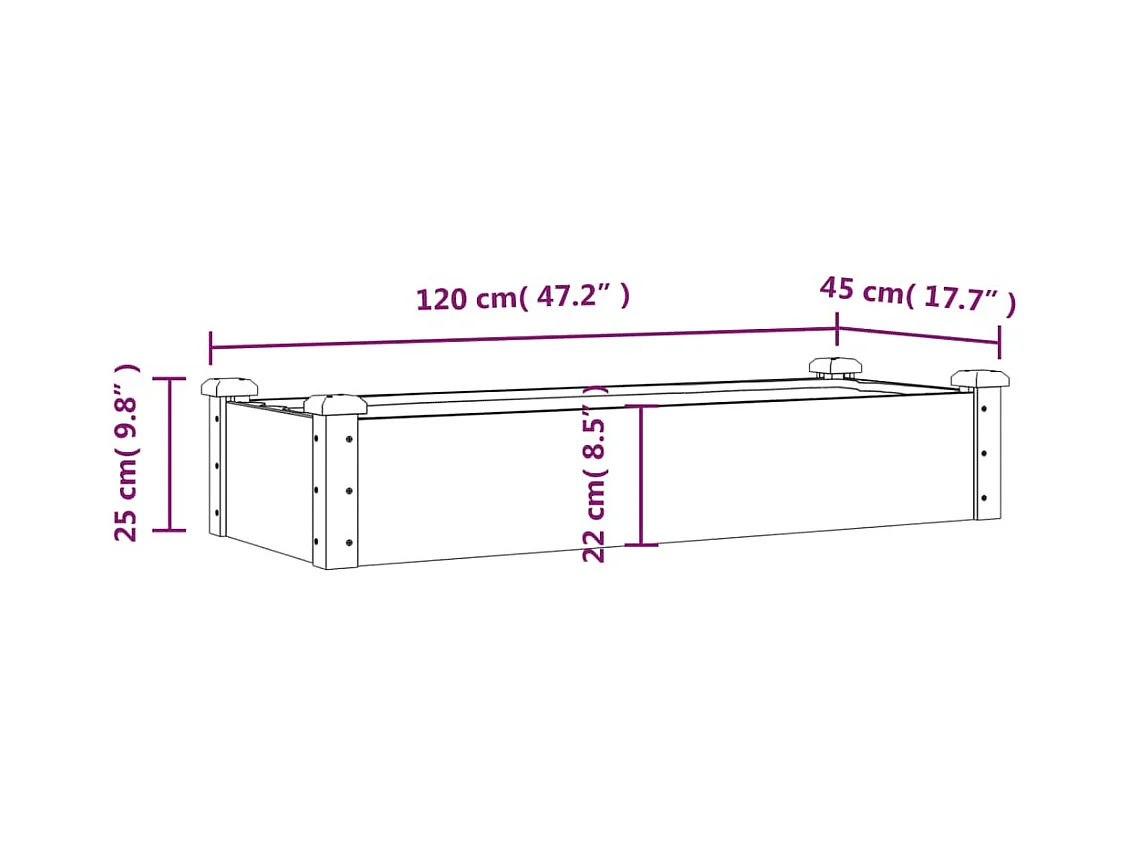 Lit surélevé de jardin doublure 120x45x25 bois massif sapin