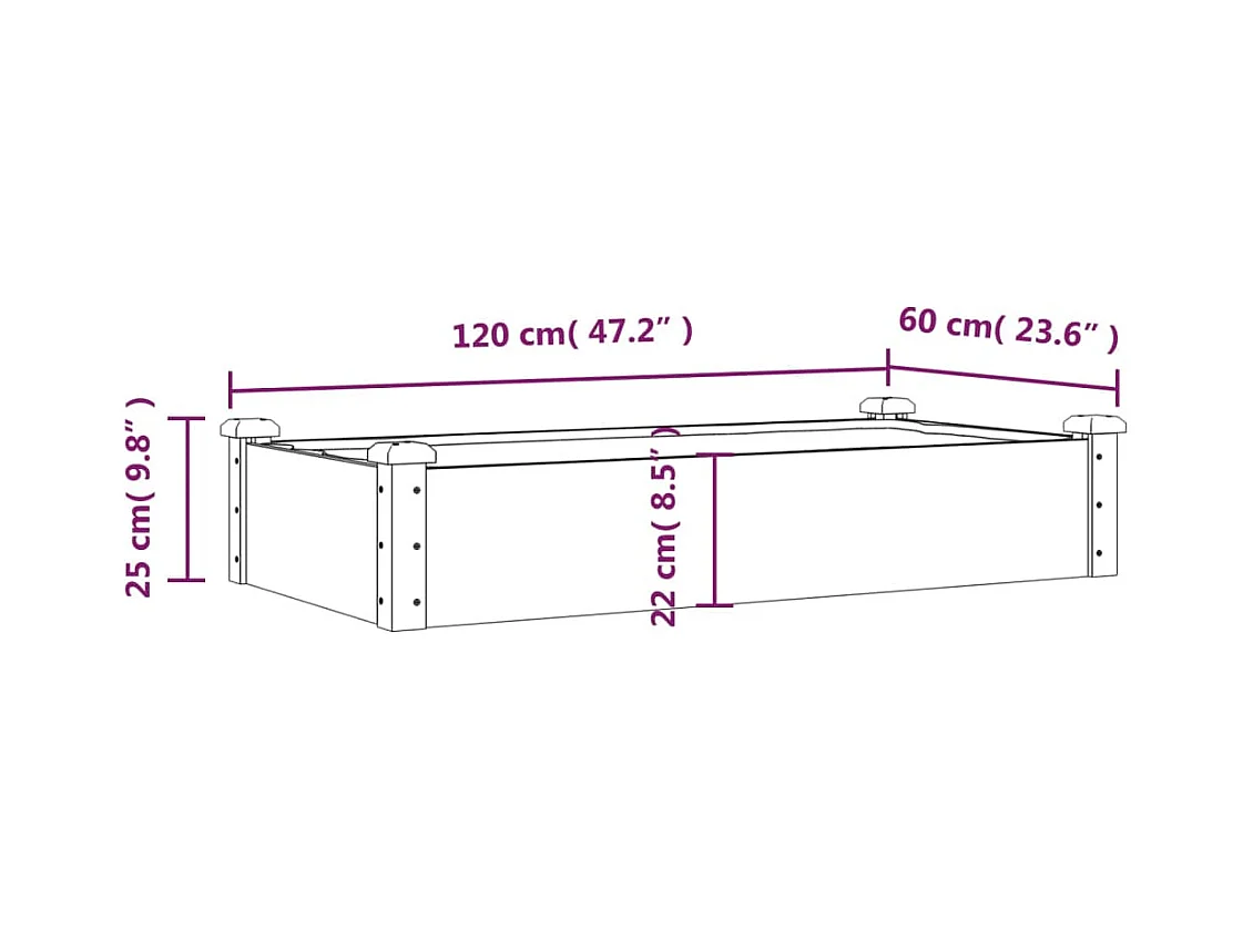Lit surélevé de jardin doublure 120x60x25 bois massif sapin