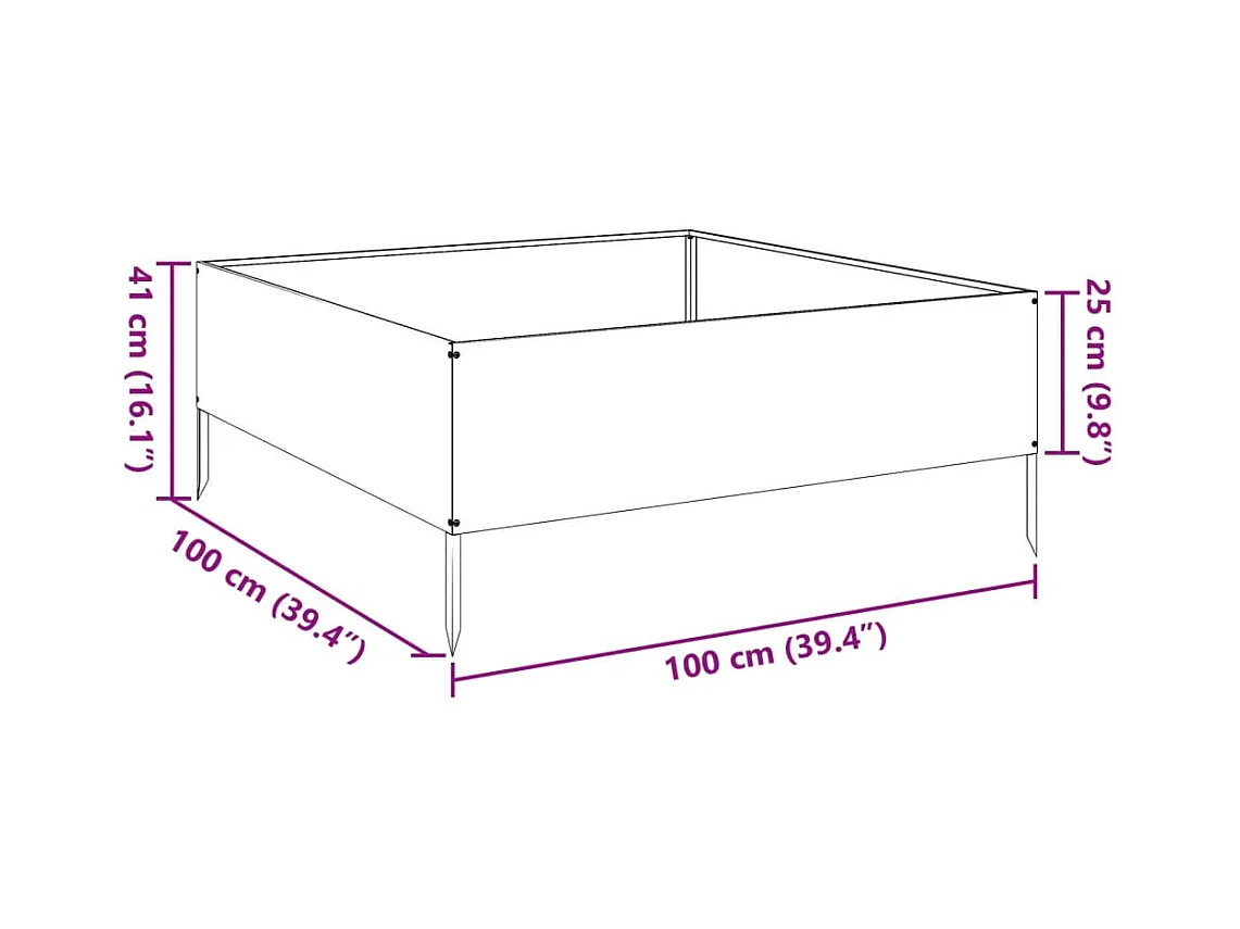 Lit surélevé de jardin noir 100x100x25 cm acier