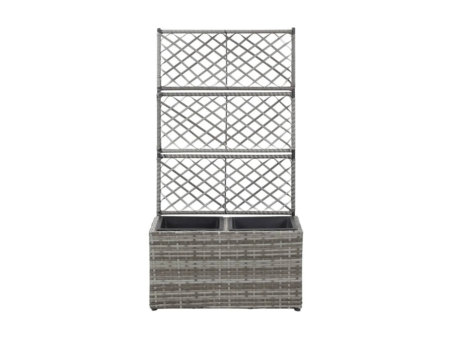Jardinière en treillis 2 pots 58x30x107 Résine tressée Gris