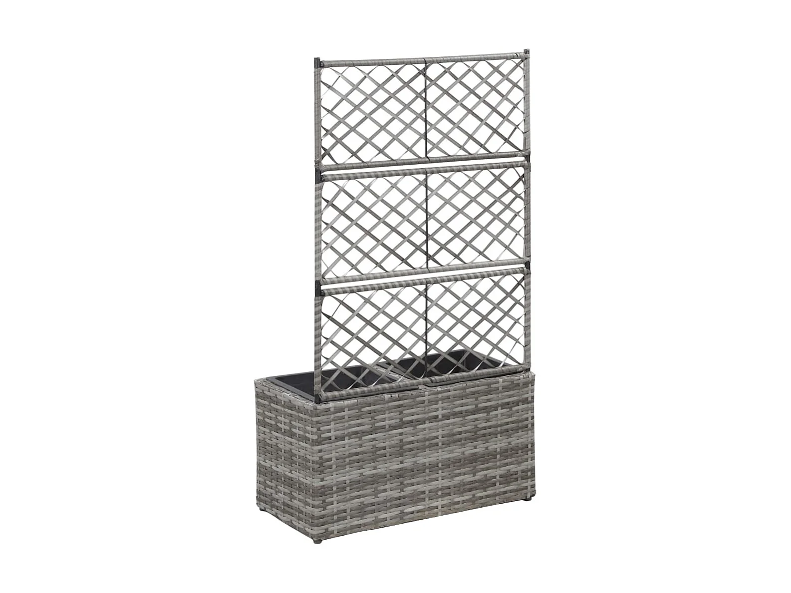 Enrejado y Jardinera 2 macetas ratán sintético gris 58x30x107 cm ES38153