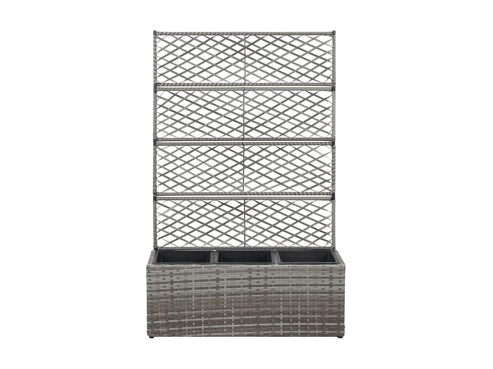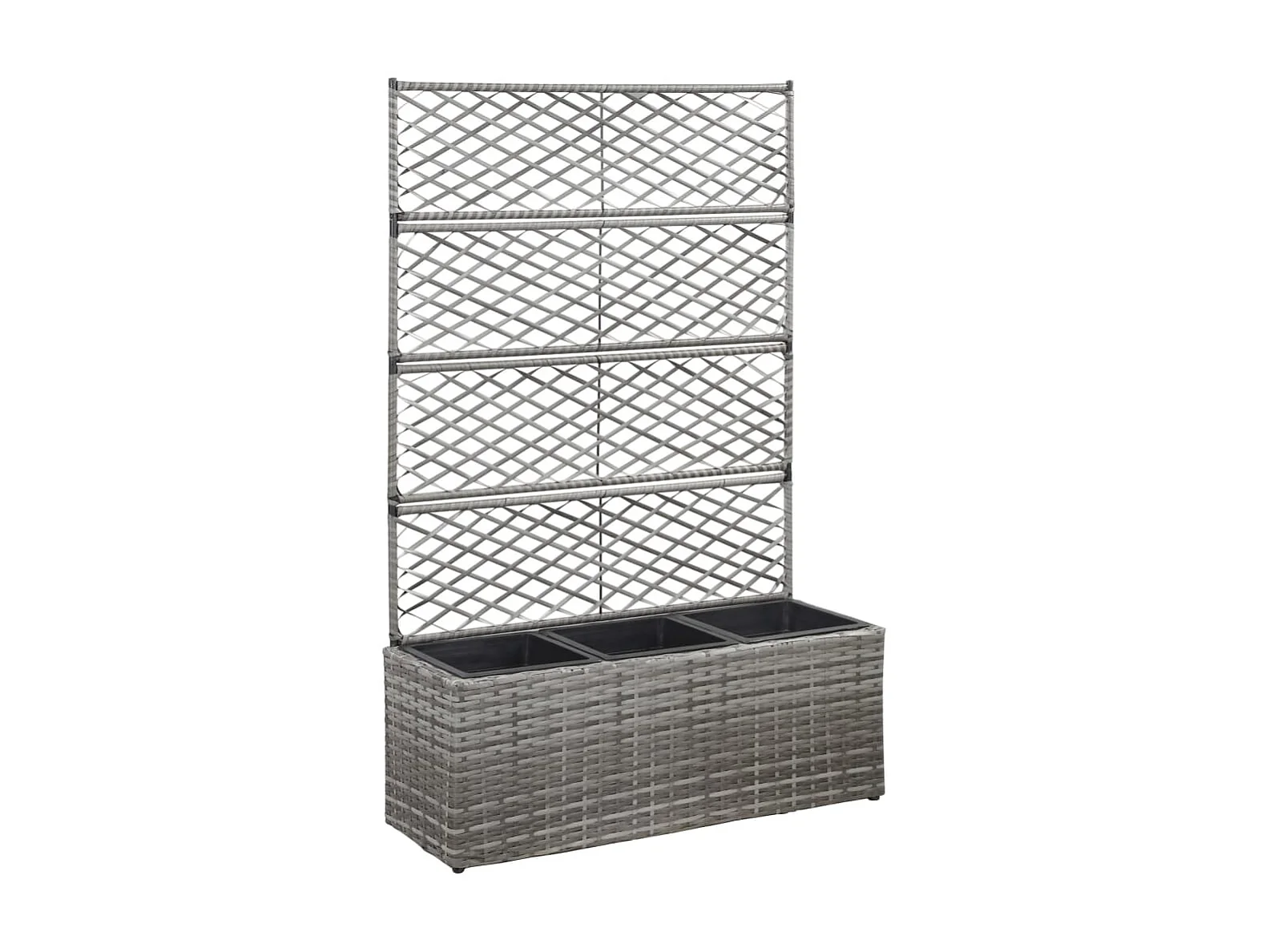 Enrejado y Jardinera 3 macetas ratán sintético gris 83x30x130 cm ES19206