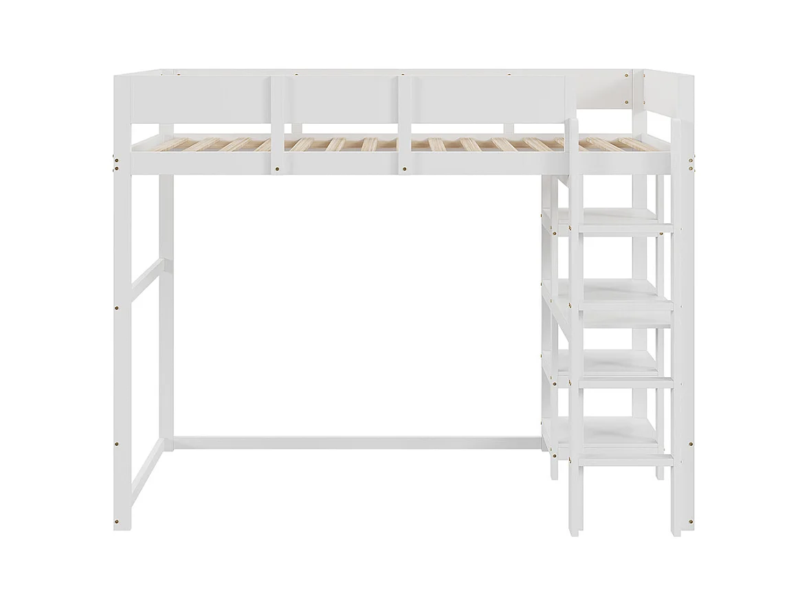 Lit surélevé Lit 90x200 cm cadre de lit en pin massif avec sommier à lattes Lit enfant pour adolescents blanc