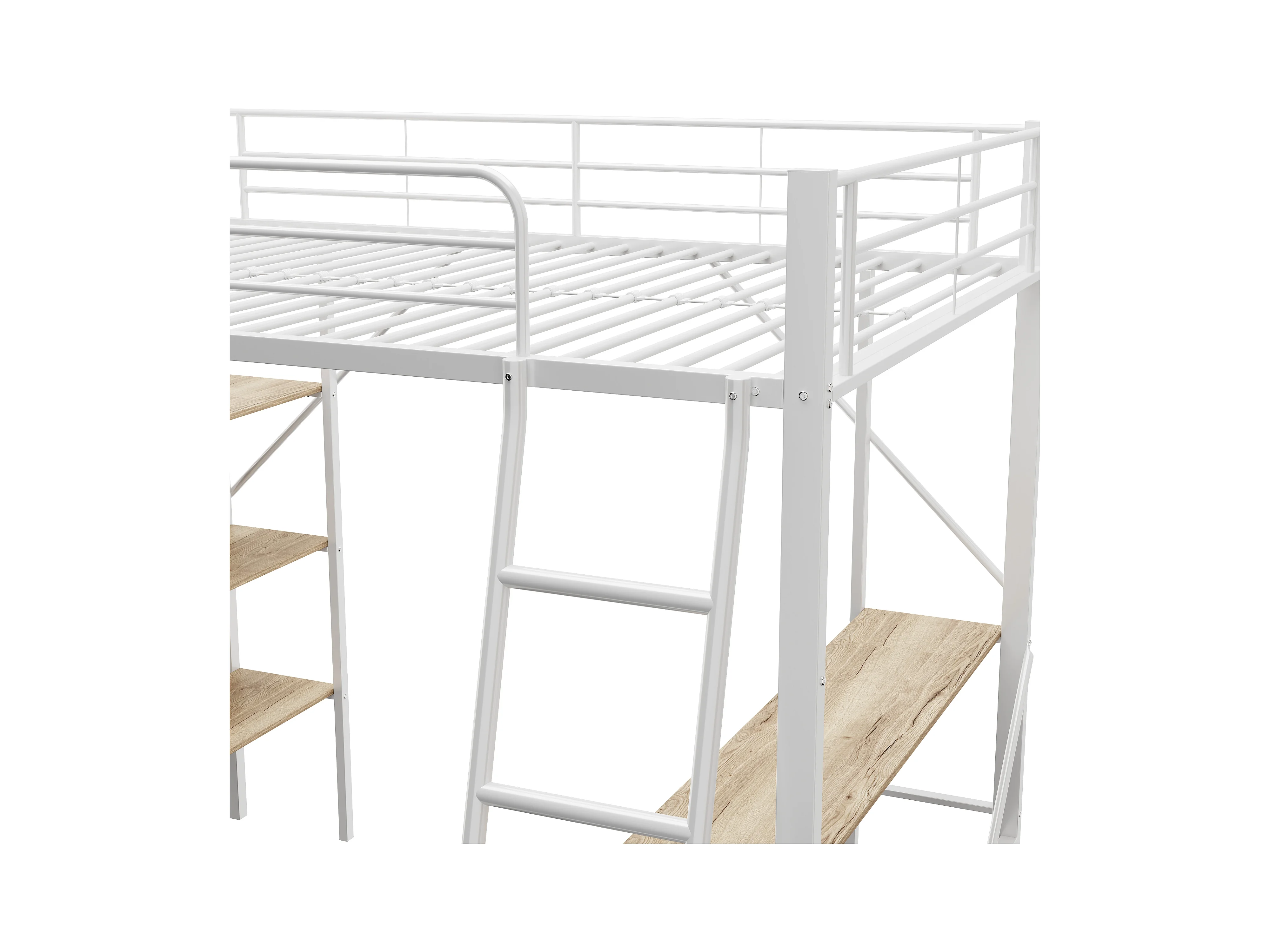 Lit surélevé sécurisé 90x200 - Bureau intégré + rangements - Structure métal renforcé blanc(sans matelas)