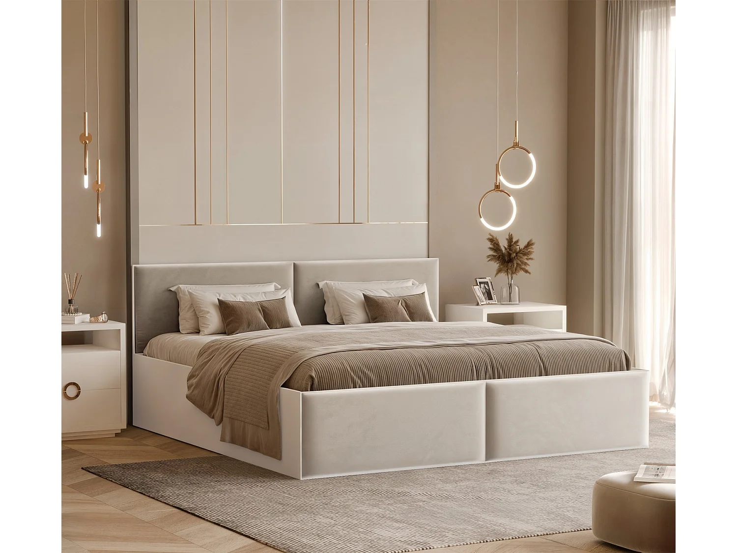 Lit tapissé ATHERIS avec coffre de rangement pour la literie | 140x200 Crème