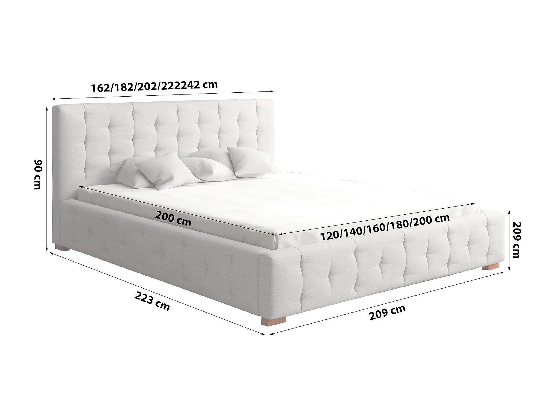 LIT TAPISSÉ avec coffre de lit et matelas Presto 200x200 cm, Orinoco 21 (Gris clair)