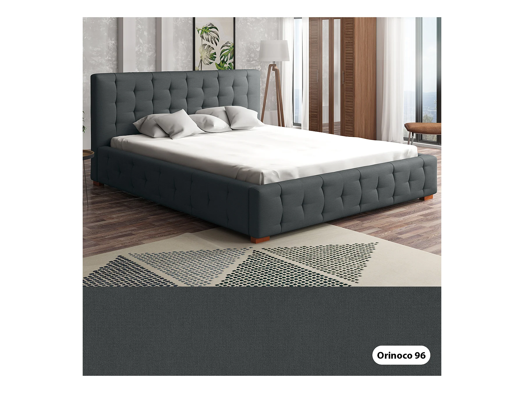 LIT TAPISSÉ avec coffre de lit Presto 120x200 cm, Orinoco 96 (Graphite)