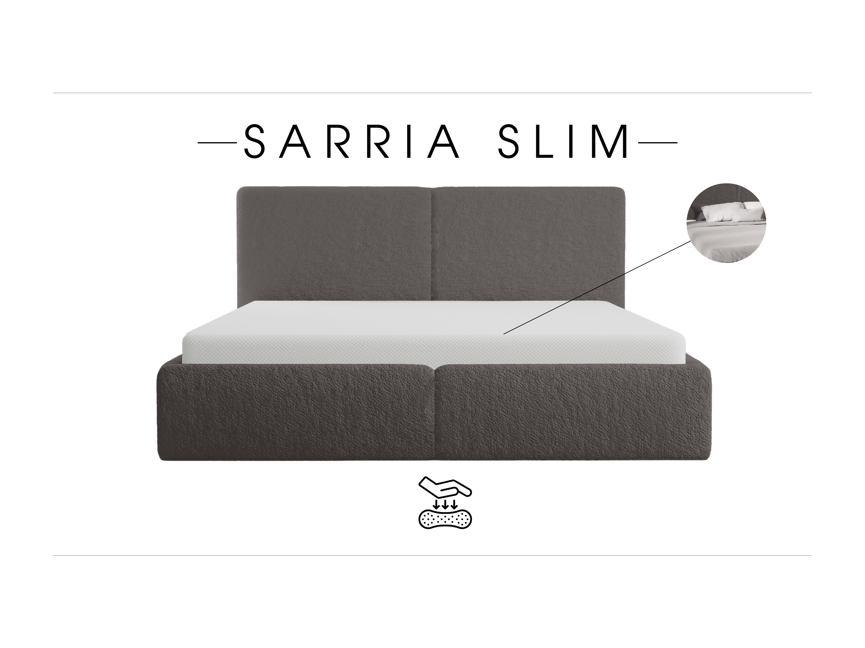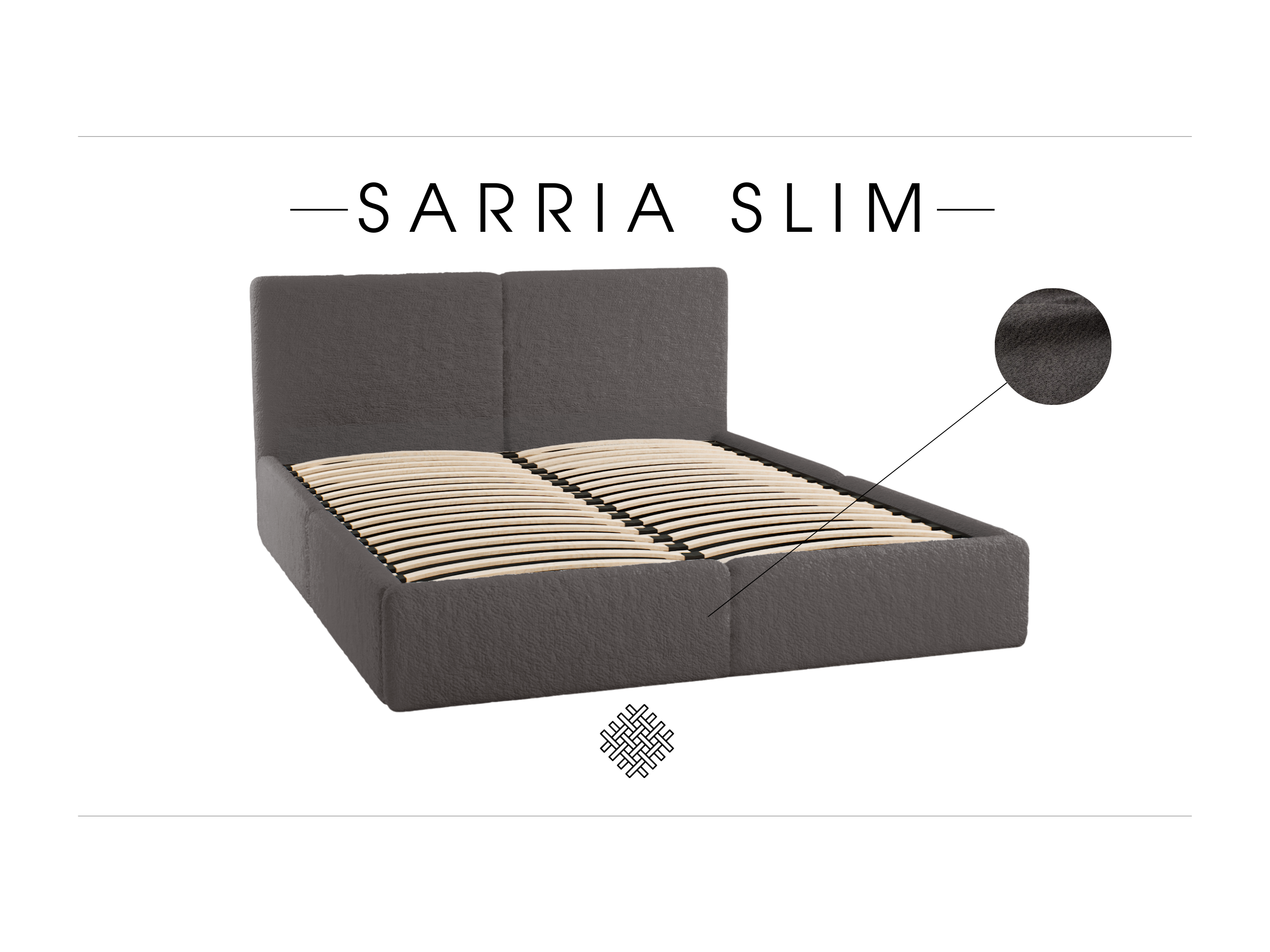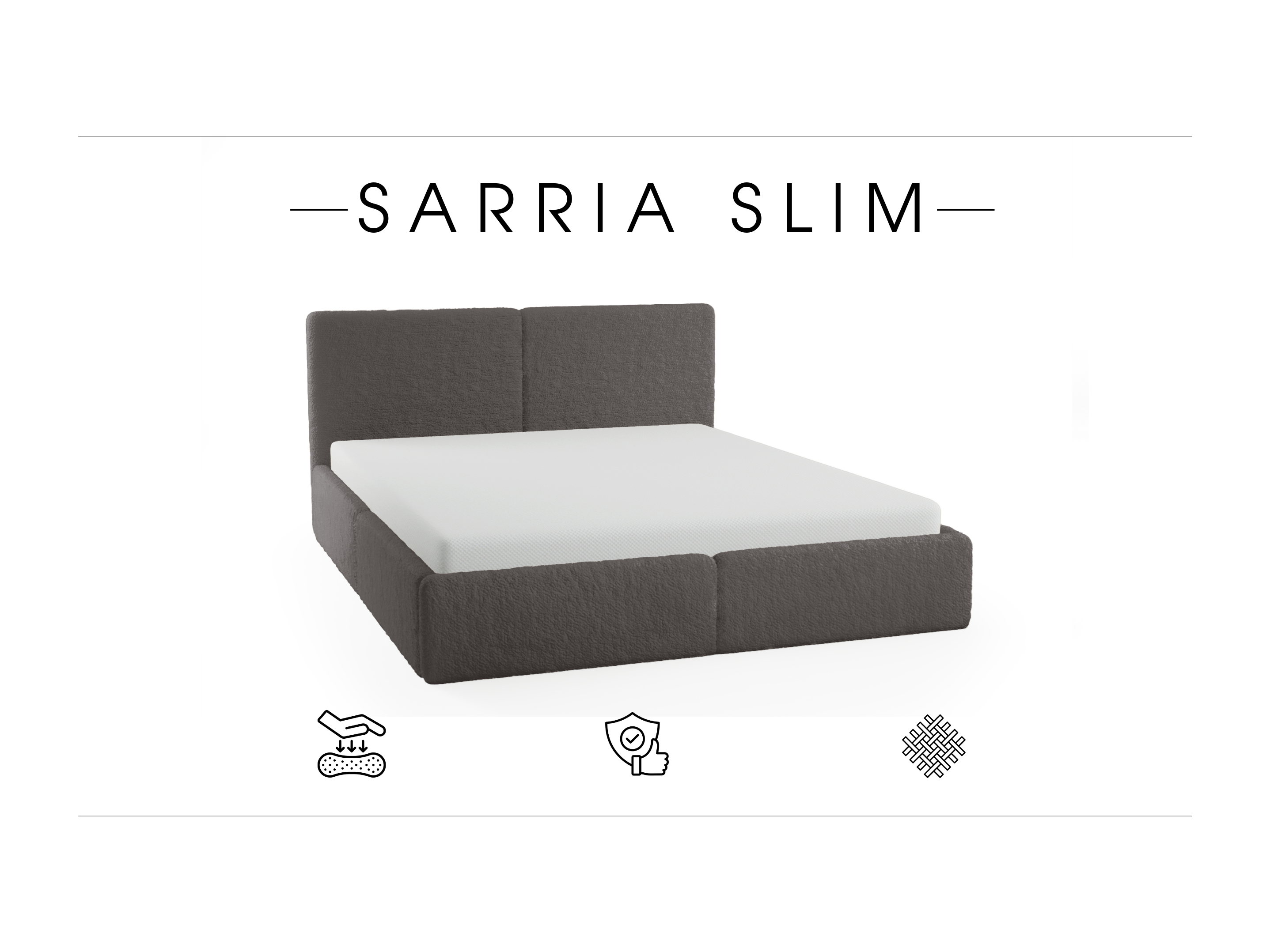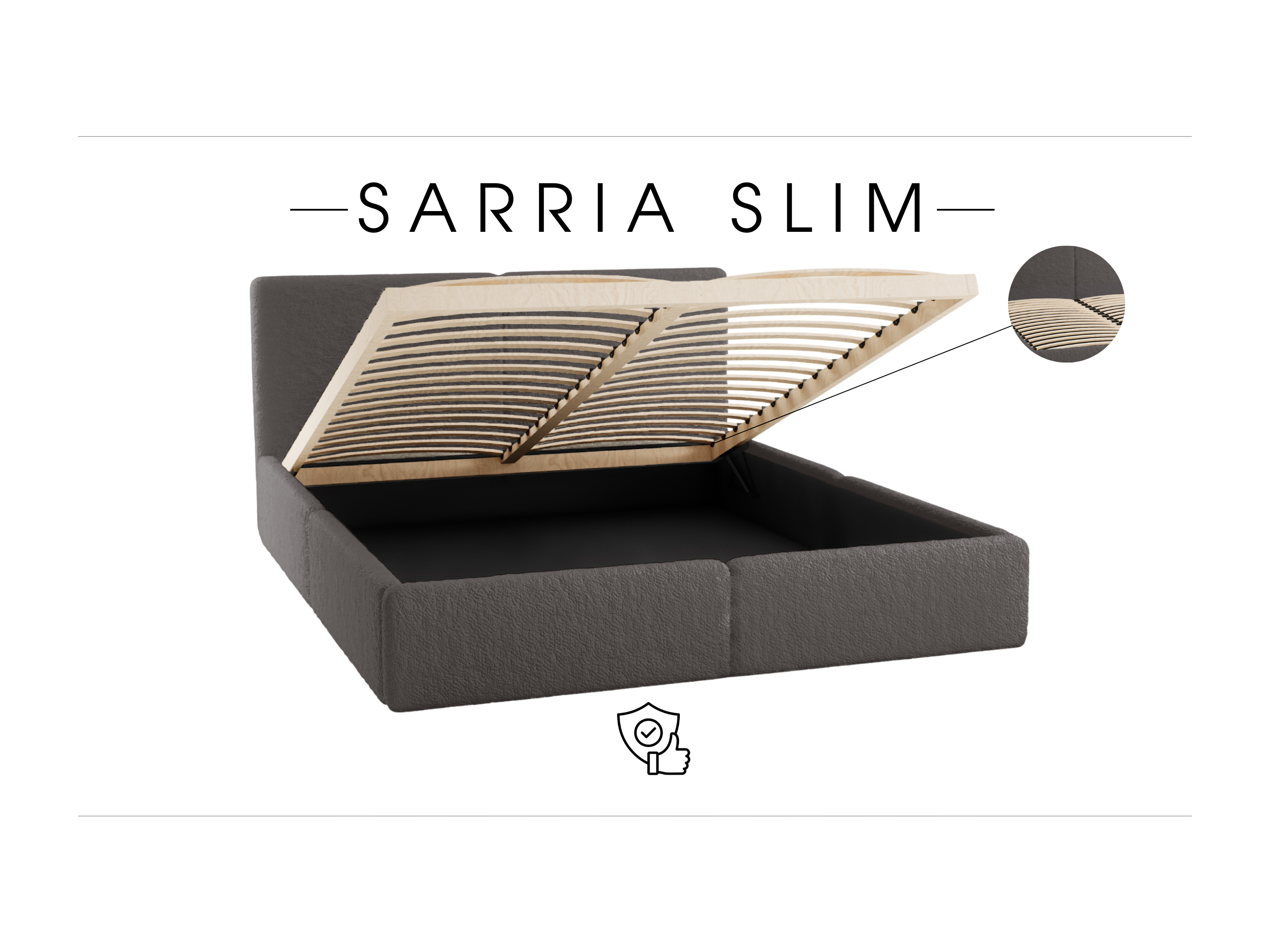 LIT TAPISSÉ avec coffre de rangement Matelas Sarria Slim Gris (Anthology 18) 140x200 cm