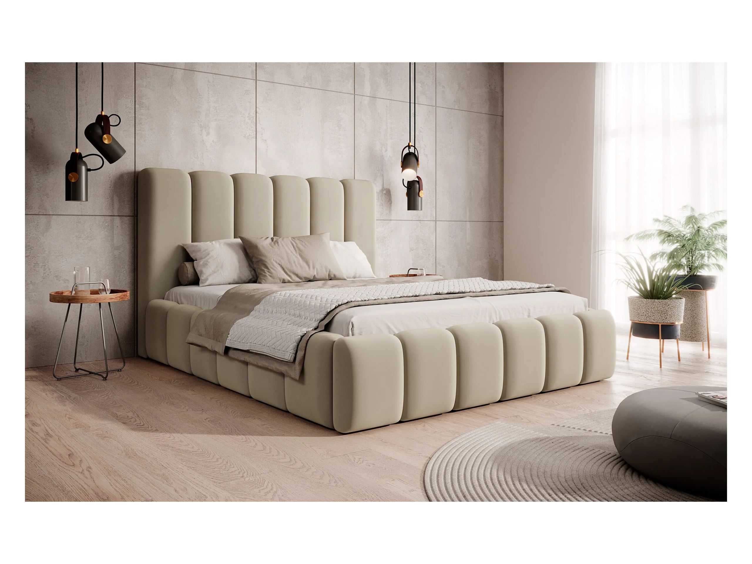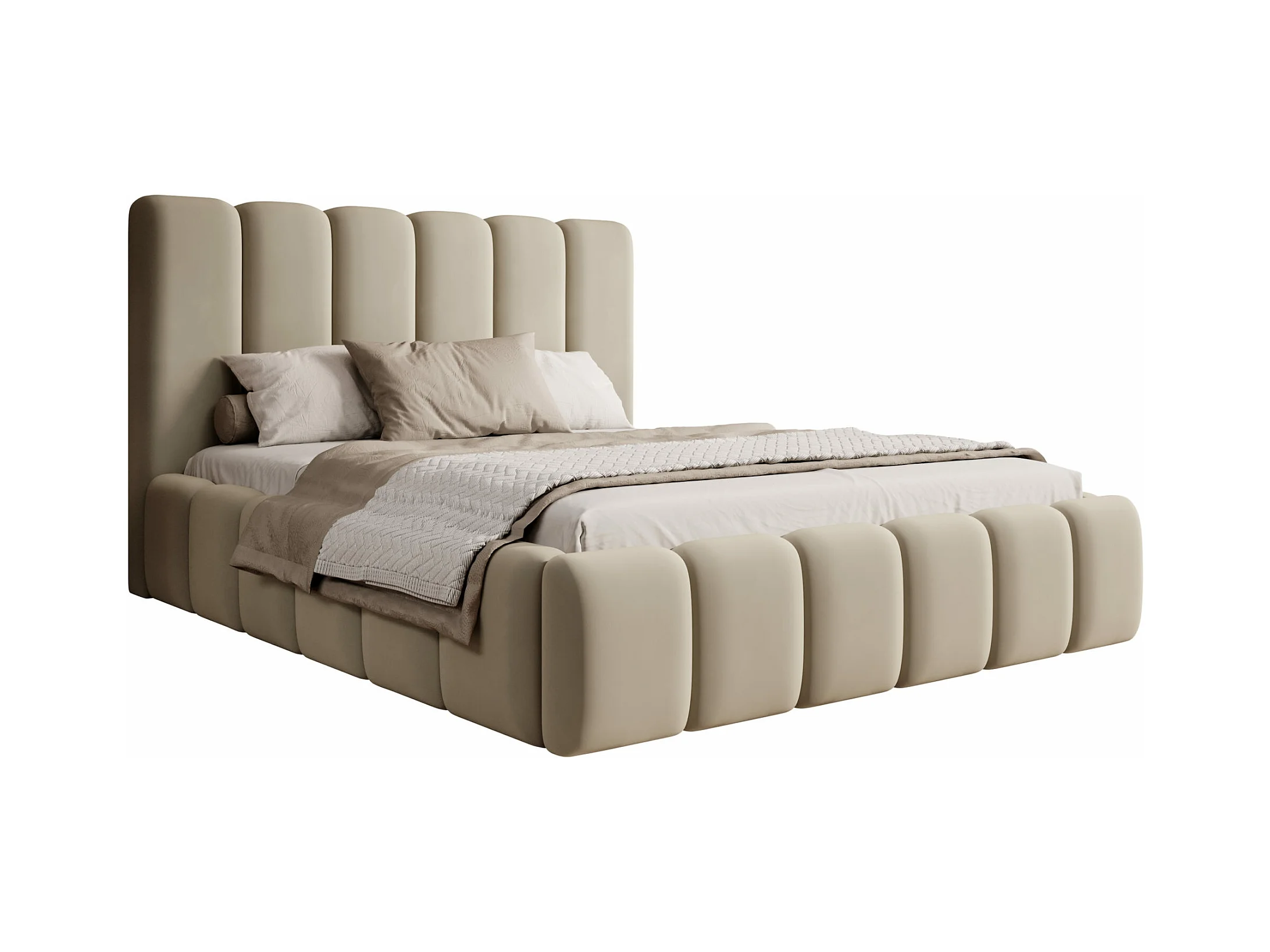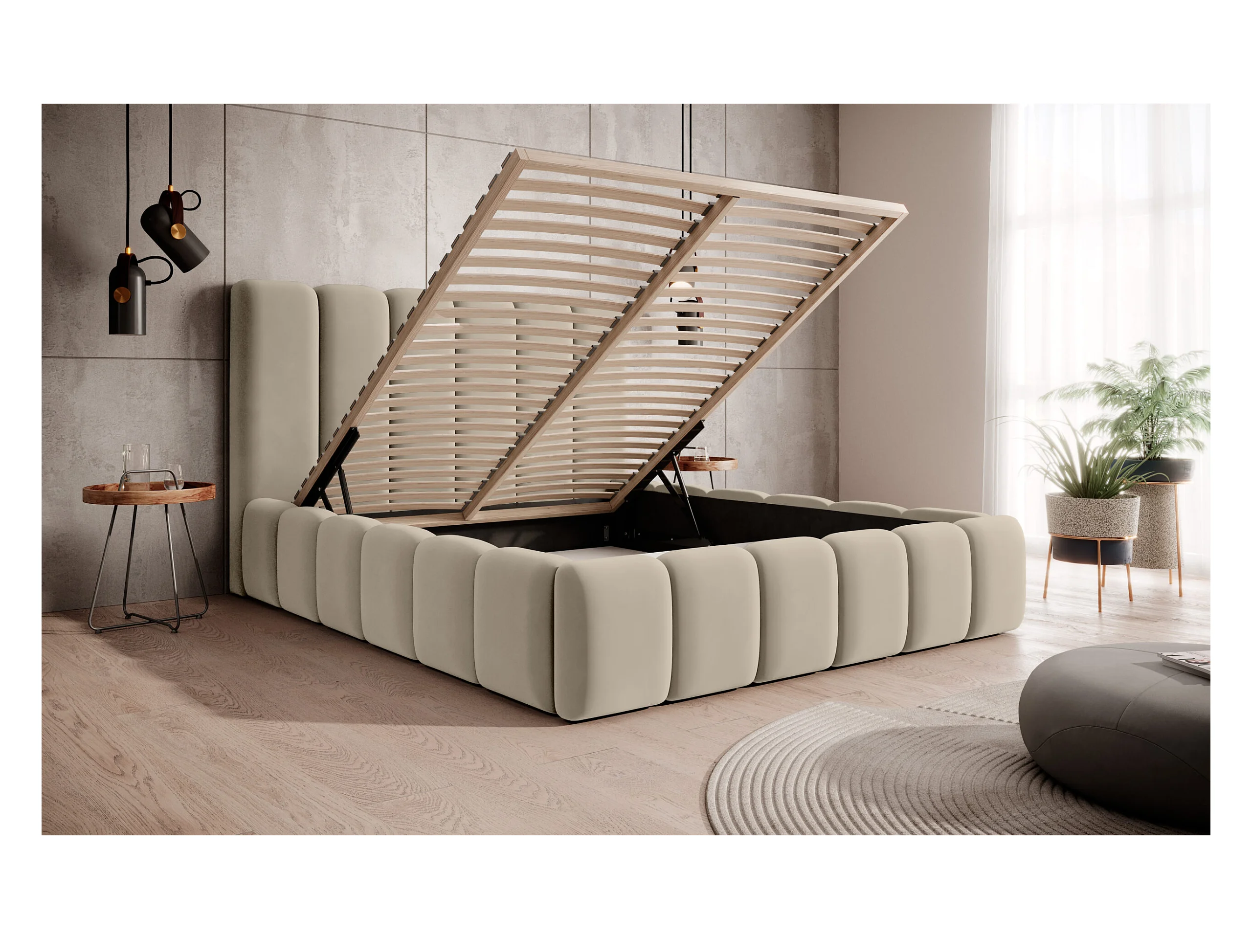 LIT TAPISSÉ avec coffre de rangement Rimini Beige foncé 160x200 cm