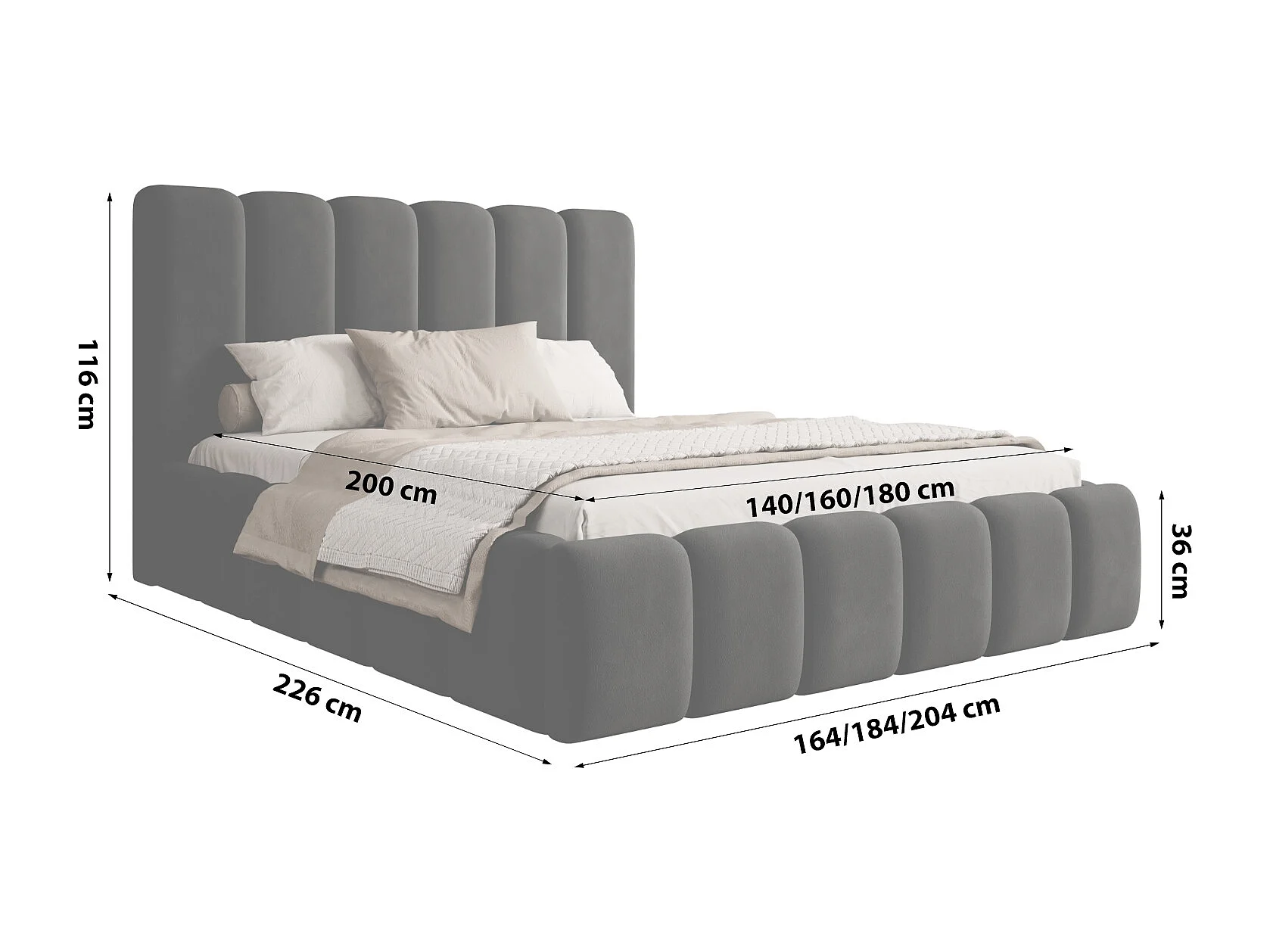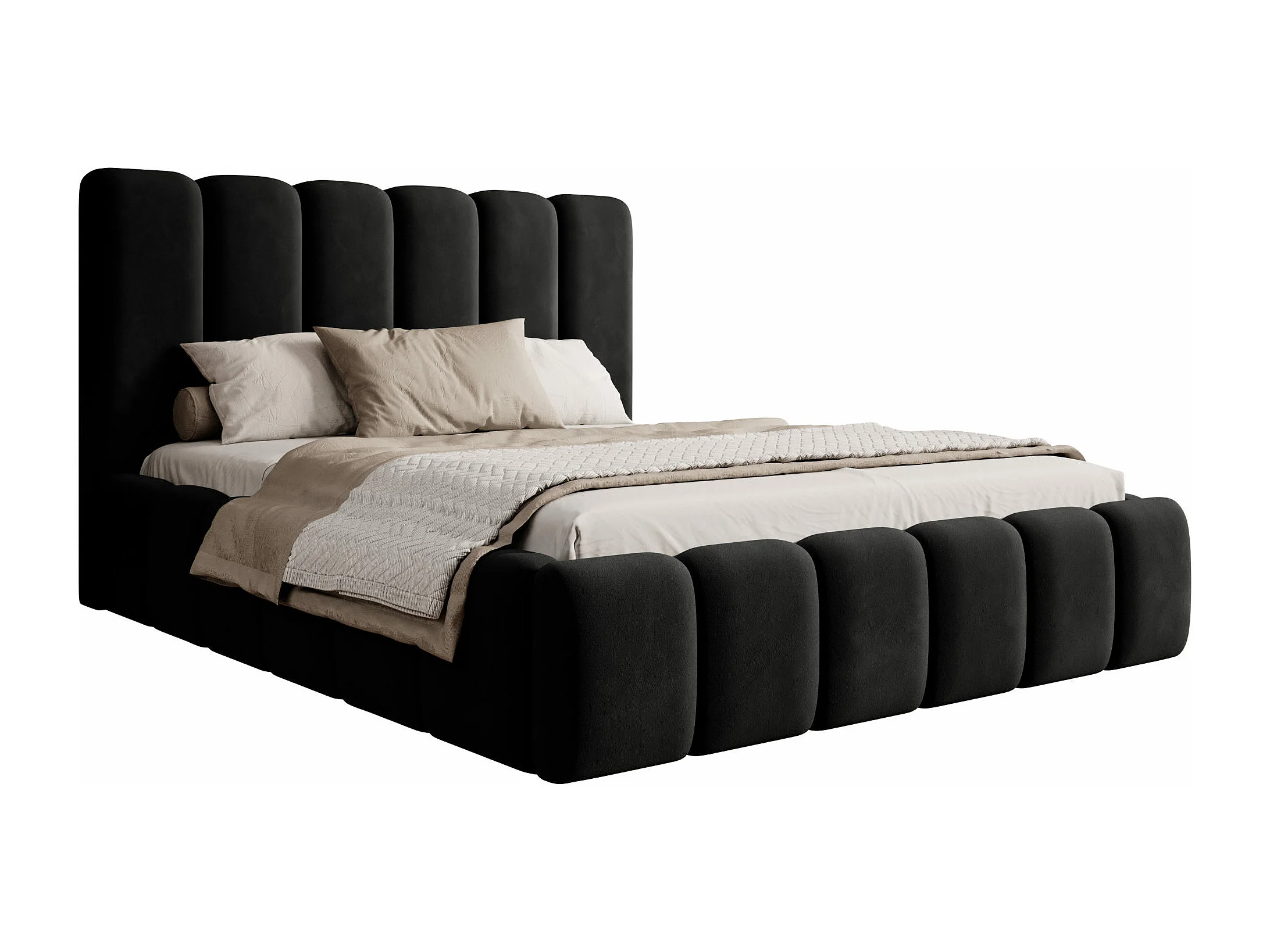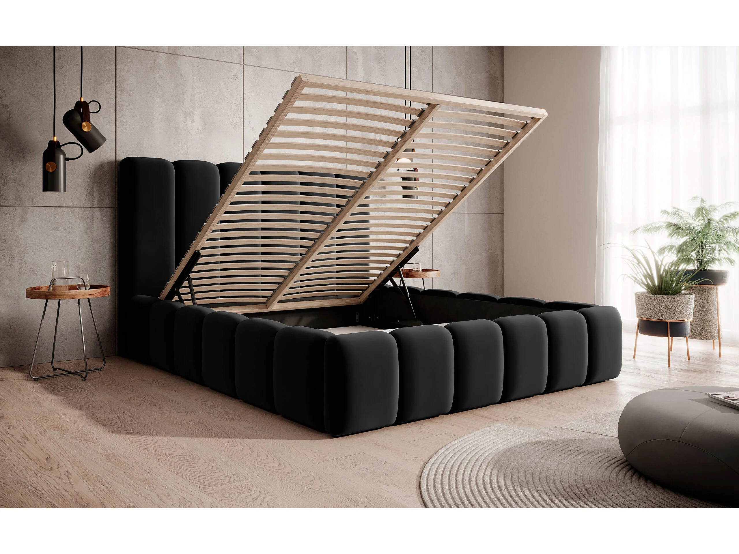 LIT TAPISSÉ avec coffre de rangement Rimini Noir 140x200 cm
