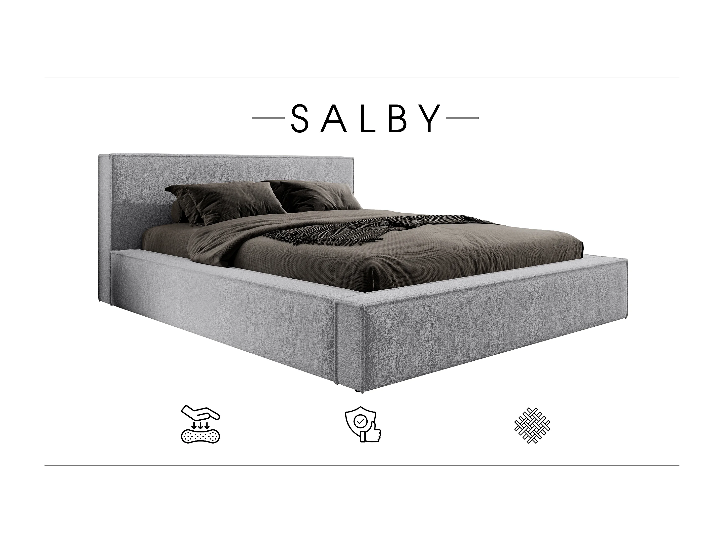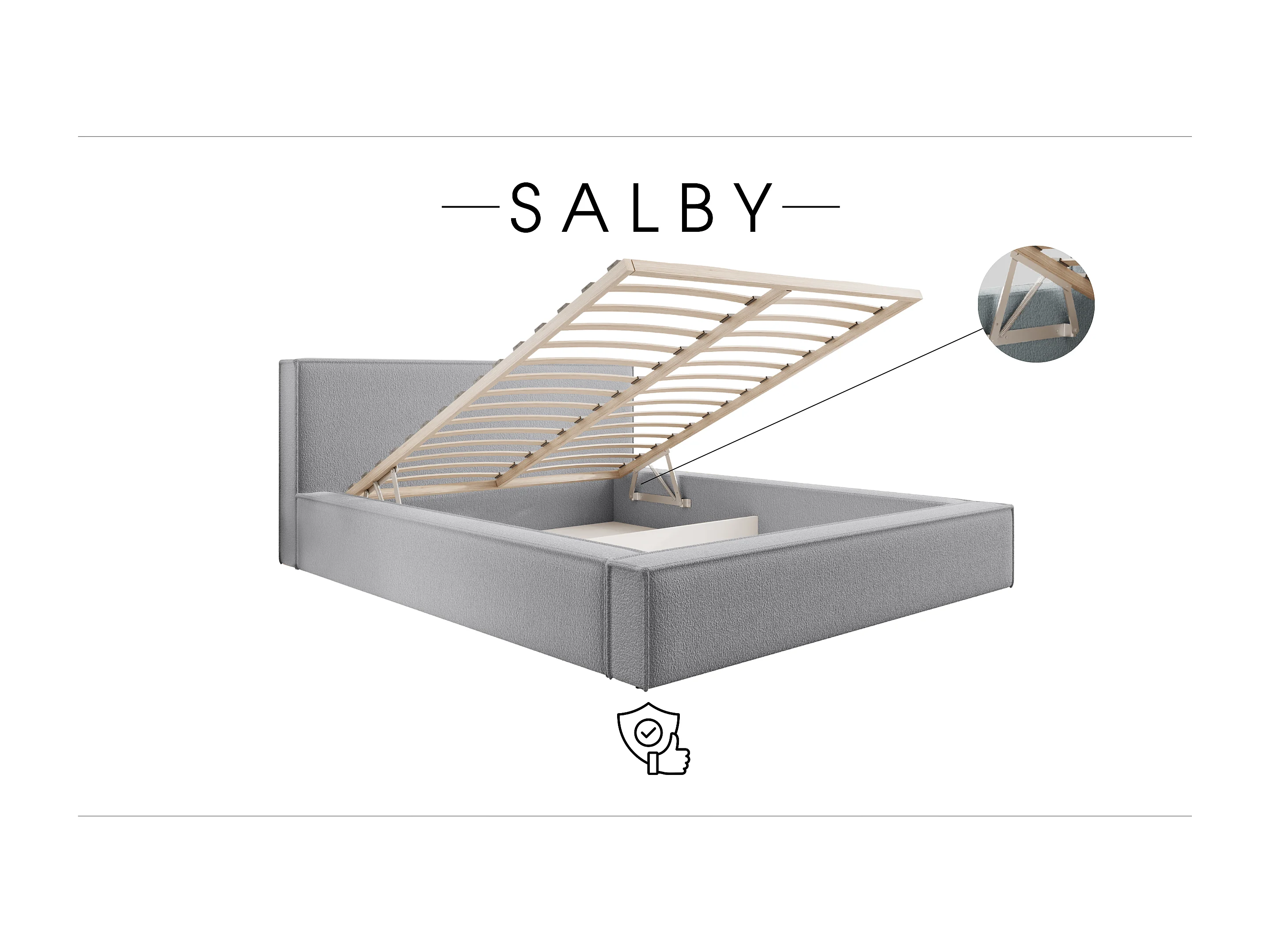 LIT TAPISSÉ avec coffre et matelas Salby 180x200 cm, Gris
