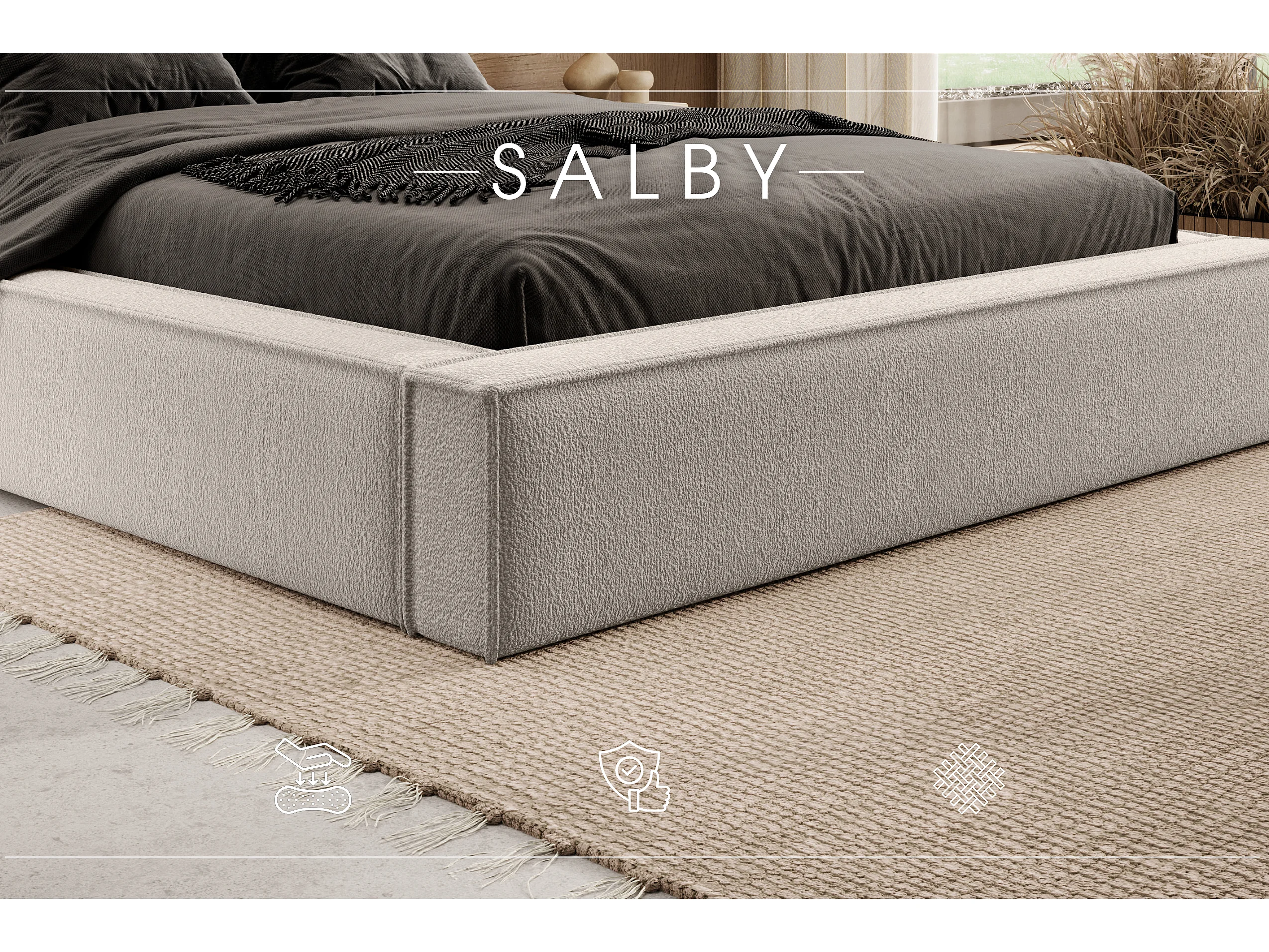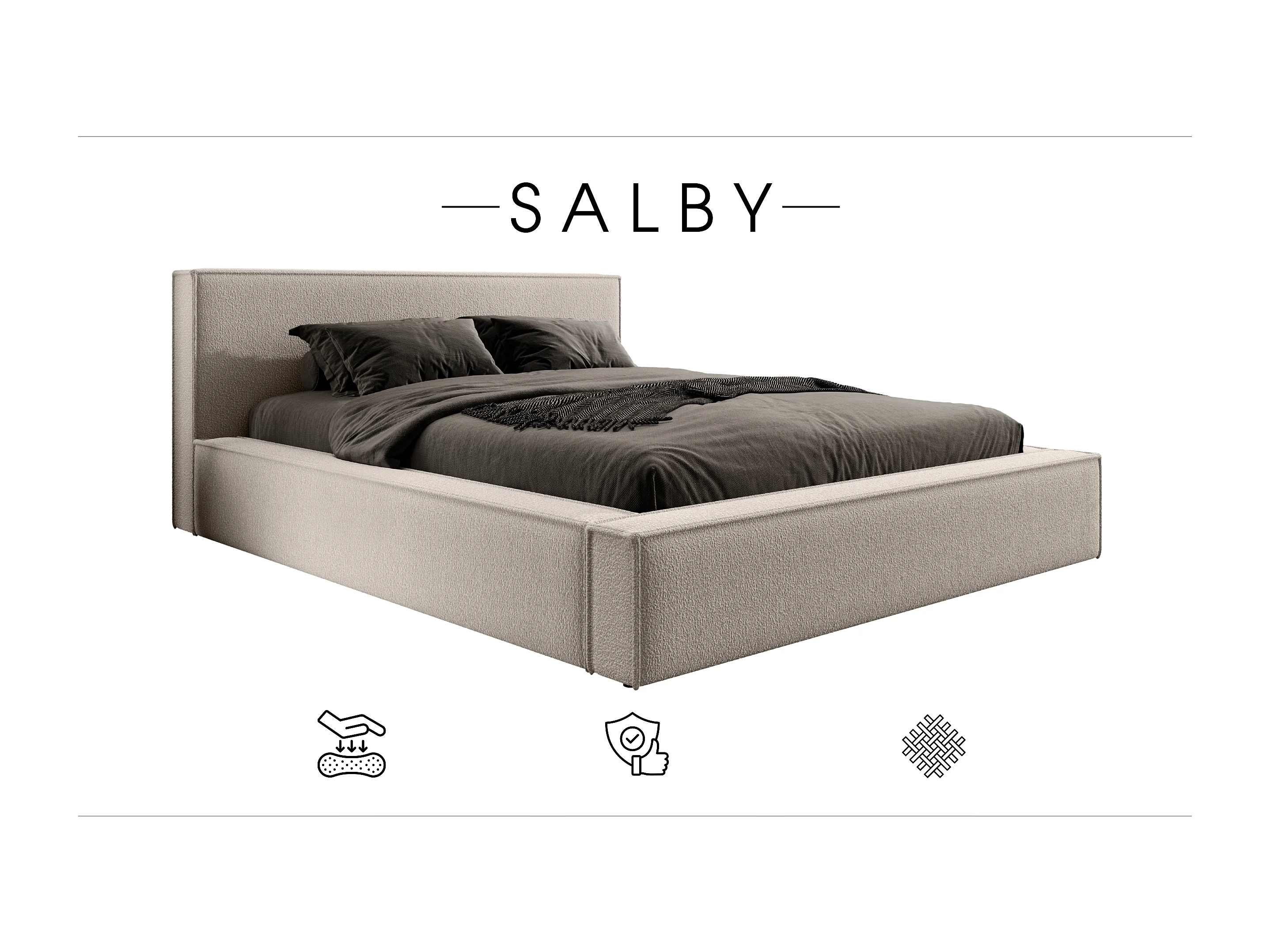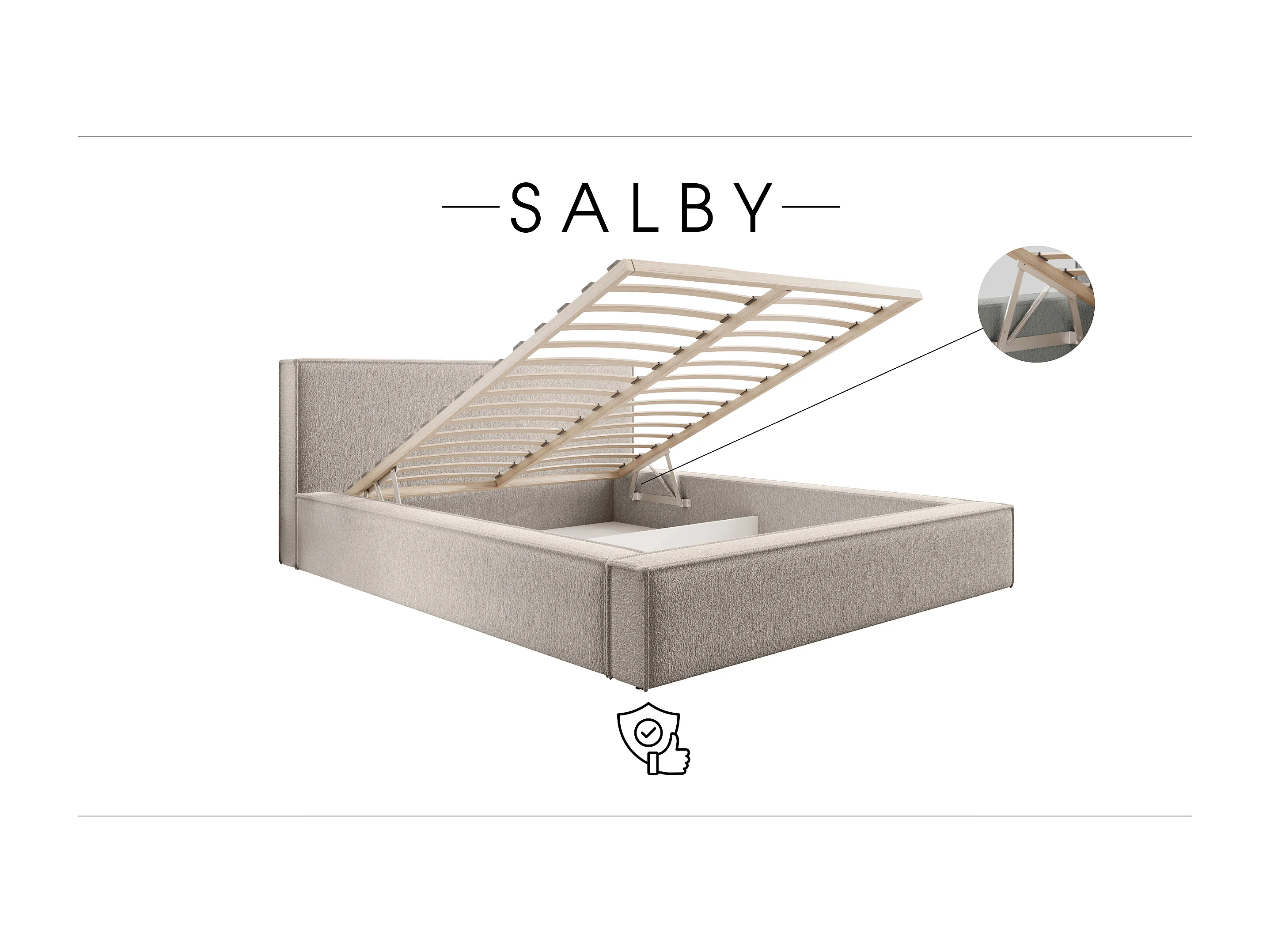 LIT TAPISSÉ avec coffre et matelas Salby 200x200 cm, Beige