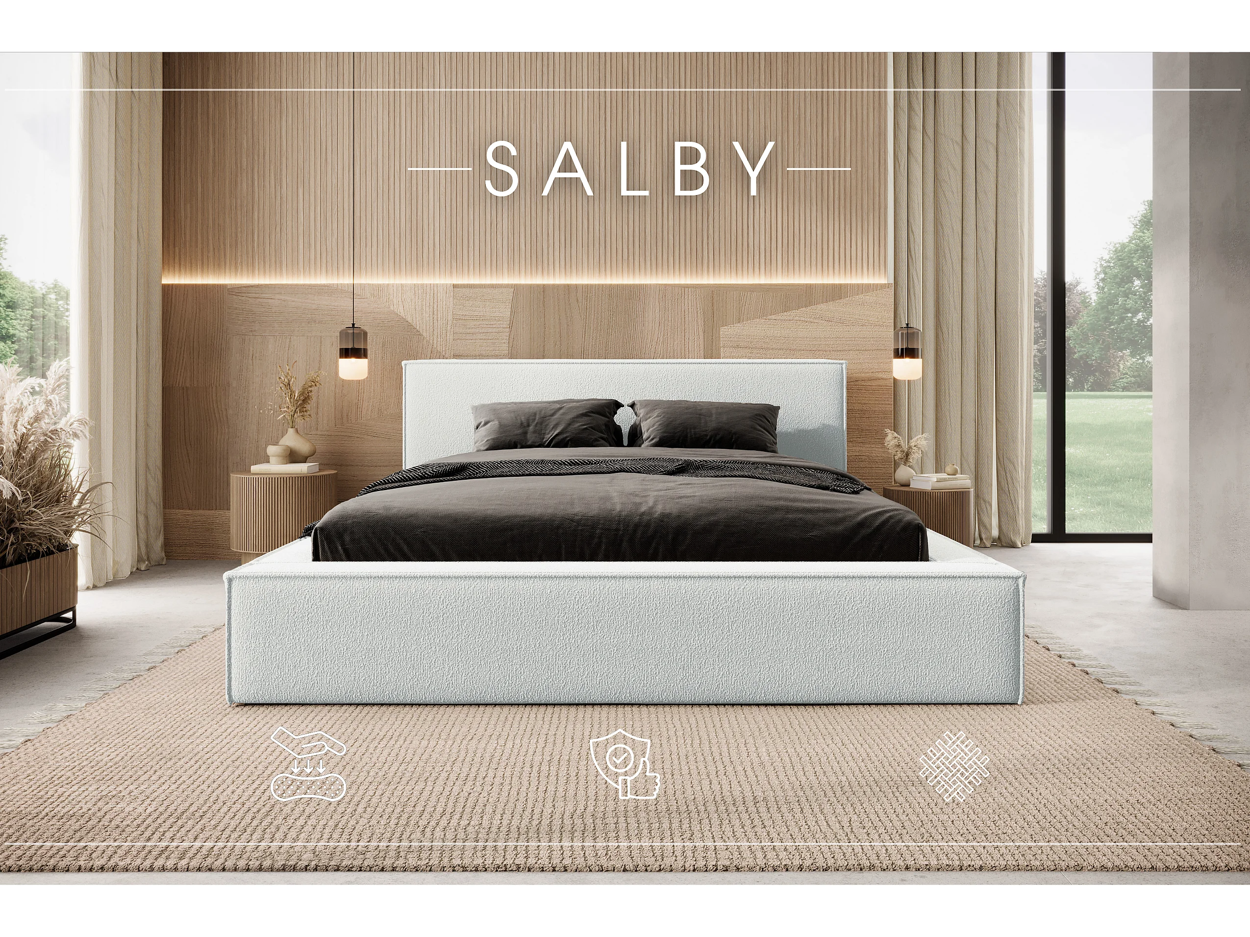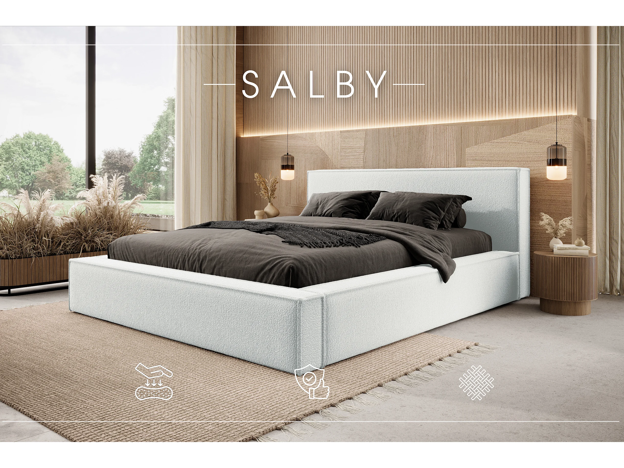 LIT TAPISSÉ avec coffre Salby 180x200 cm, Crème