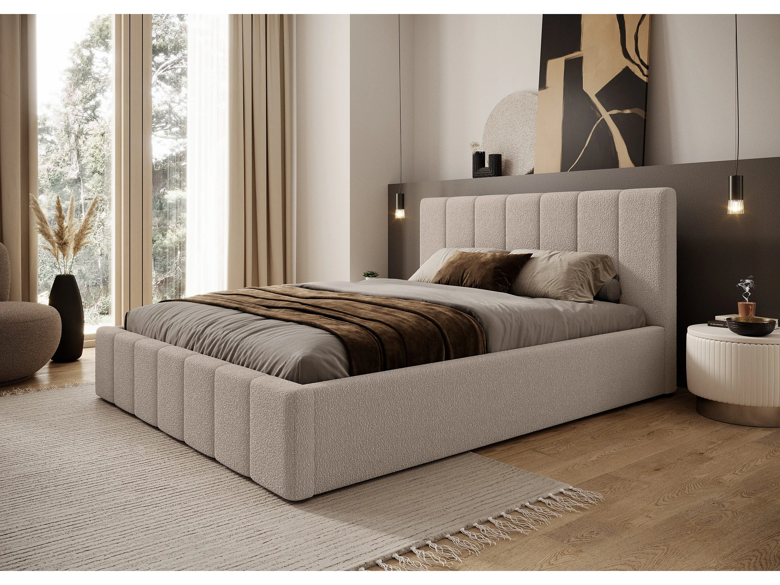 LIT TAPISSÉ avec coffre Slim Clennen 140x200 cm, beige (Anthology 02)
