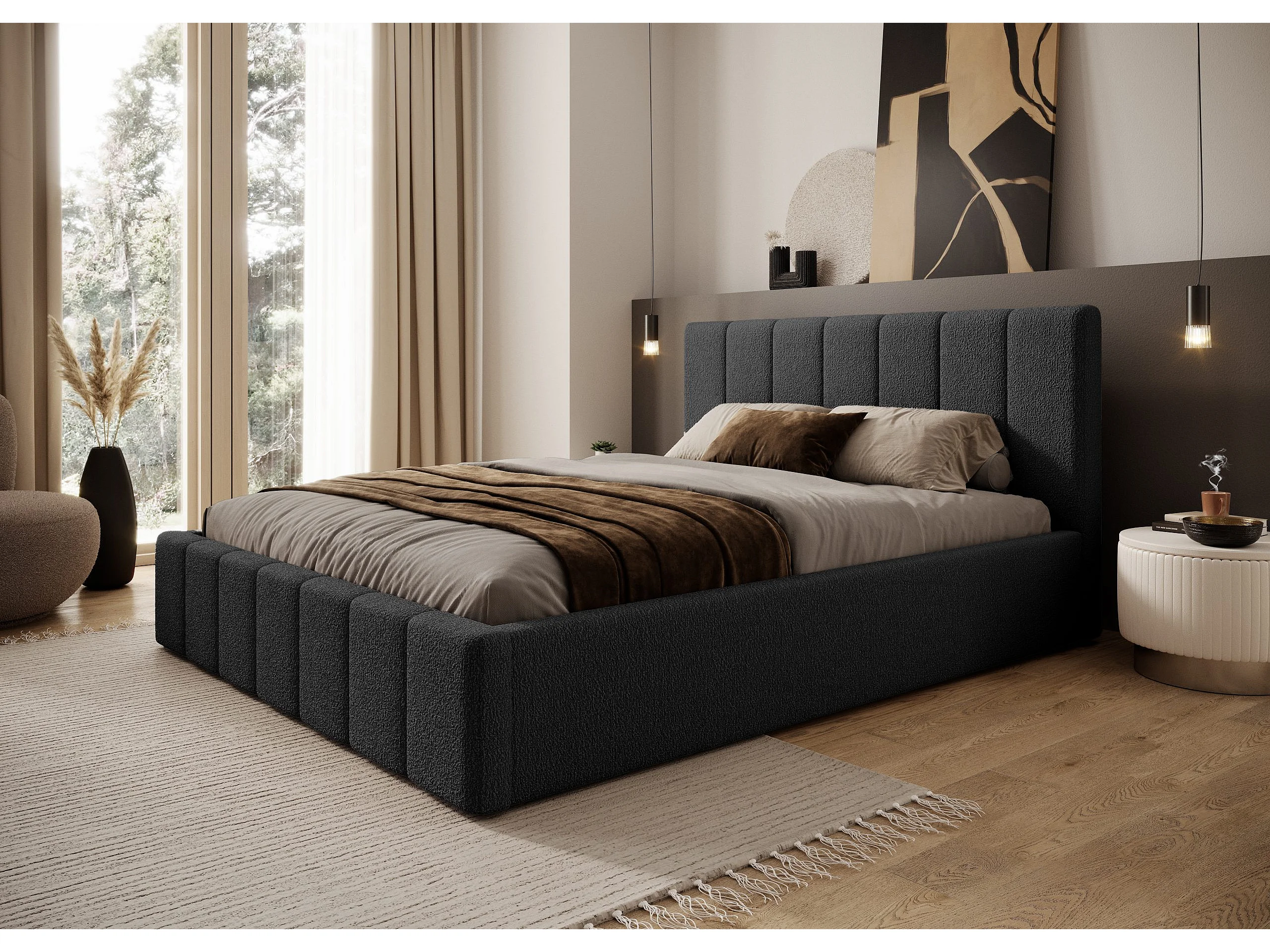 LIT TAPISSÉ avec coffre Slim Clennen 200x200 cm, noir (Anthology 19)