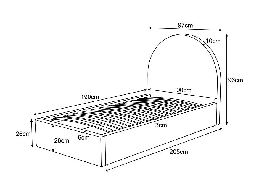 Lit tapissé avec rangement rose 90x190cm