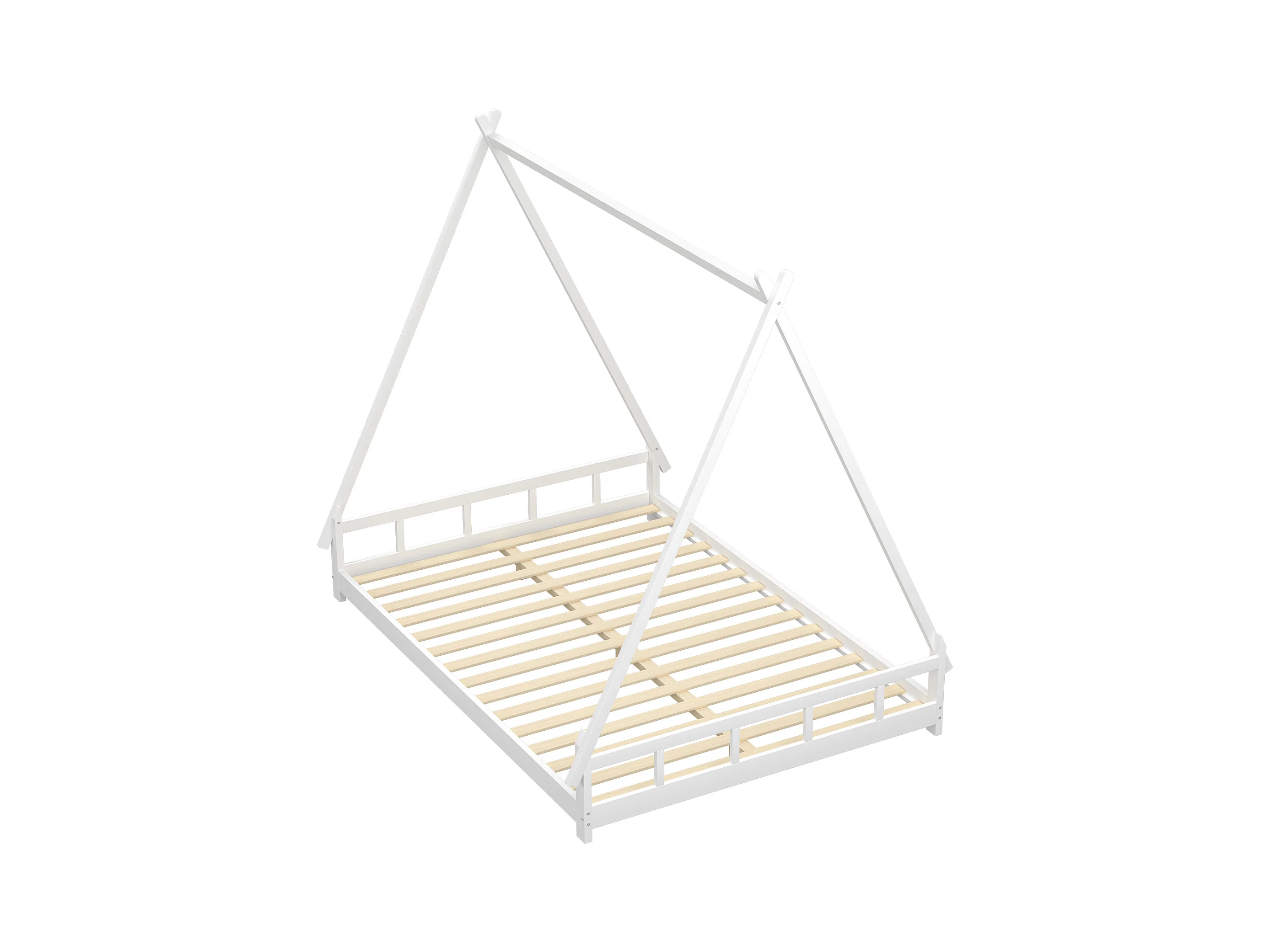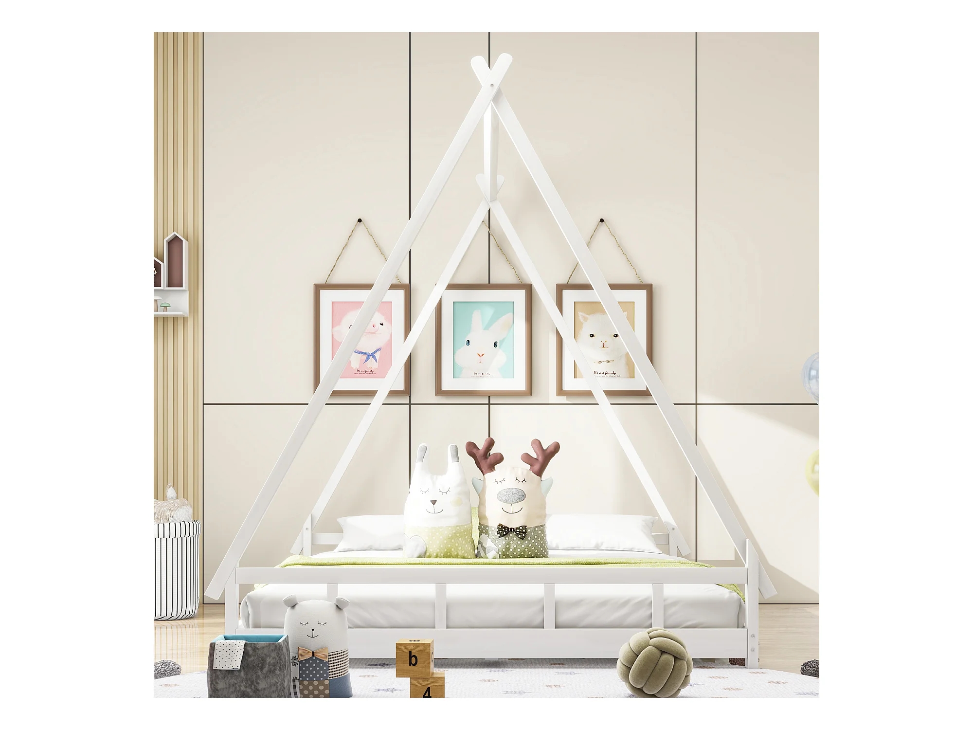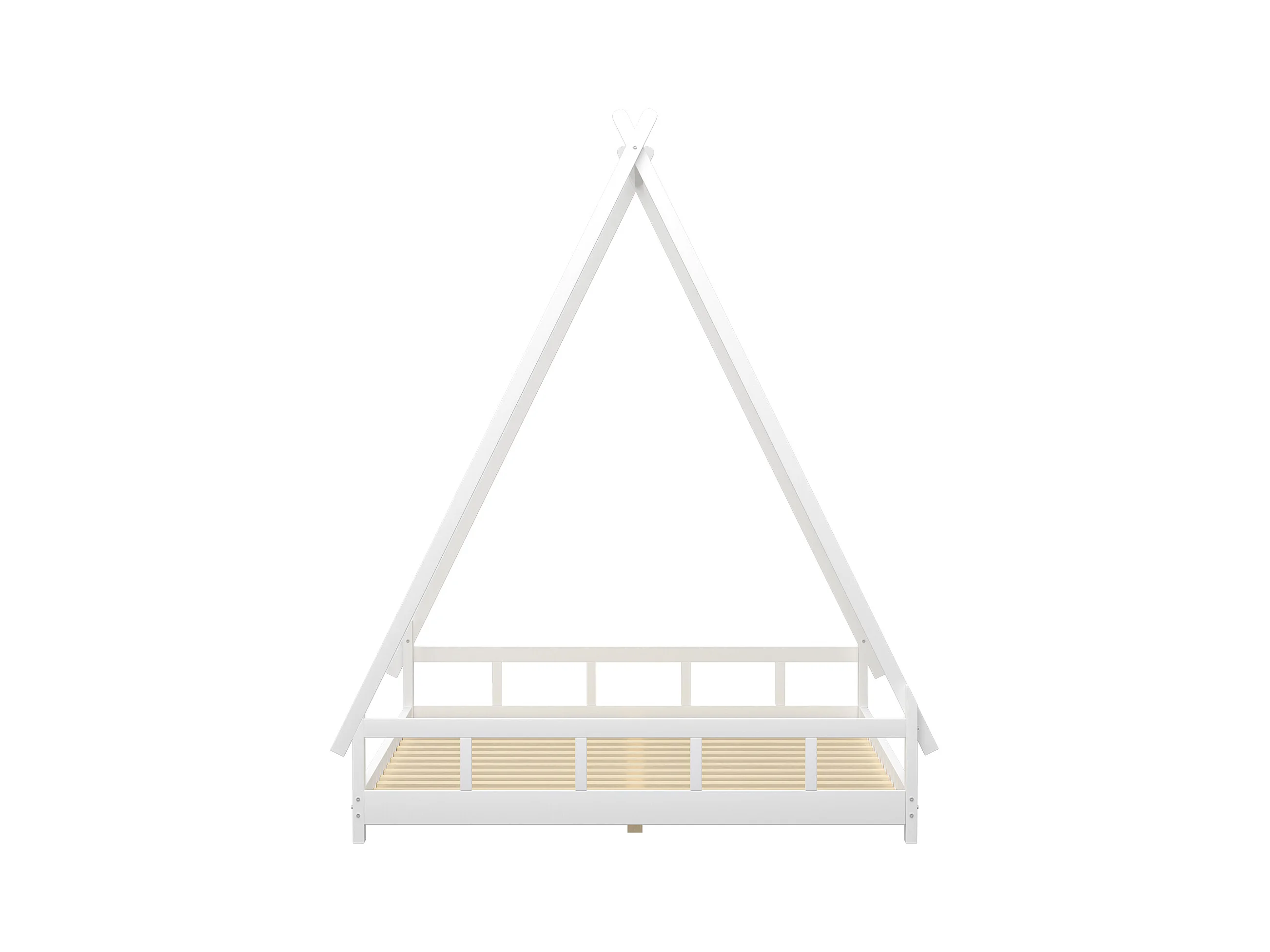 Lit tipi 140 x 200 cm - lit simple - bois massif - sommier à lattes inclus - coloris: blanc