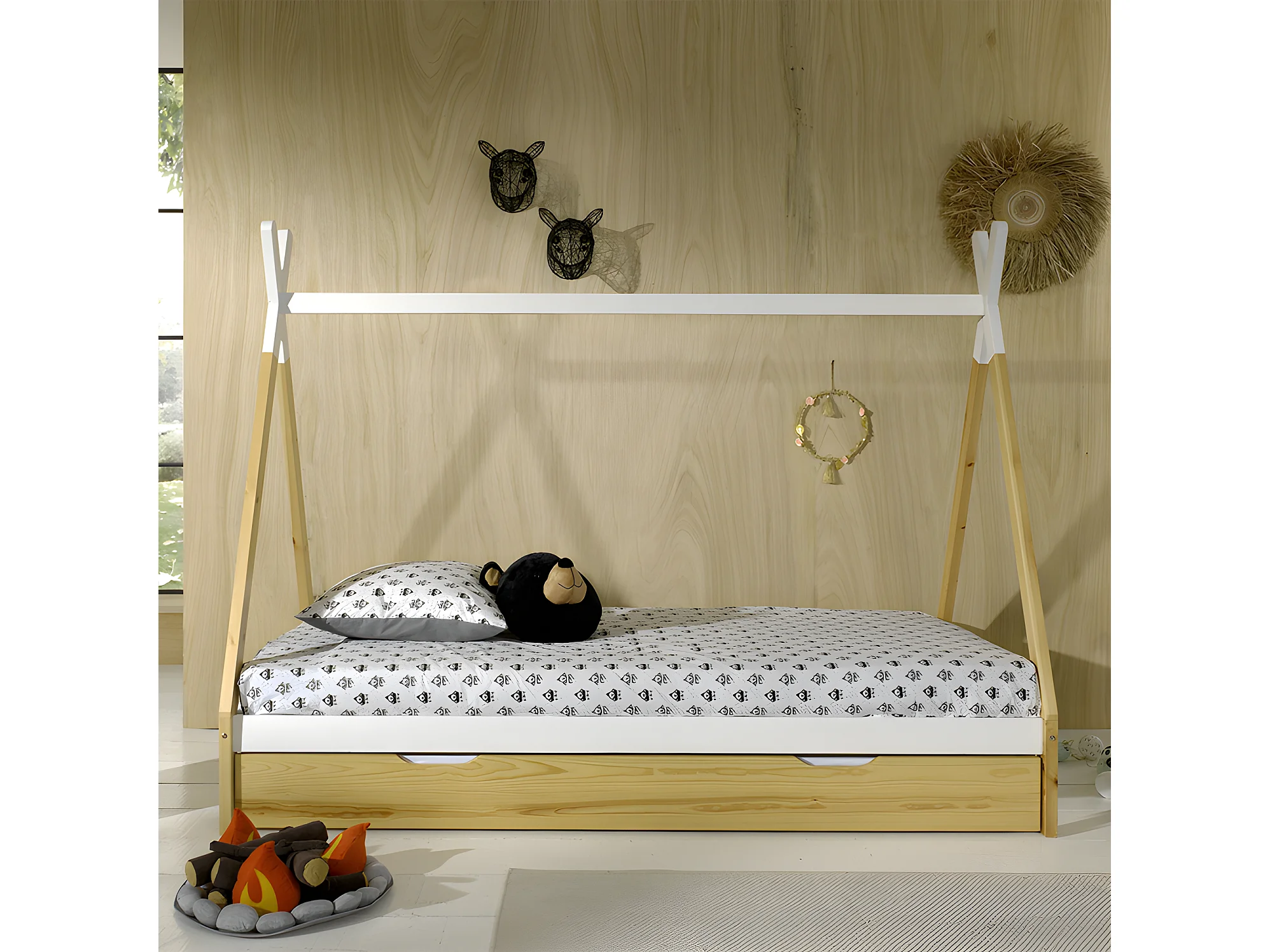 Pack - Lit Enfant & Tiroir "Tipi" 90x200cm Blanc & Naturel