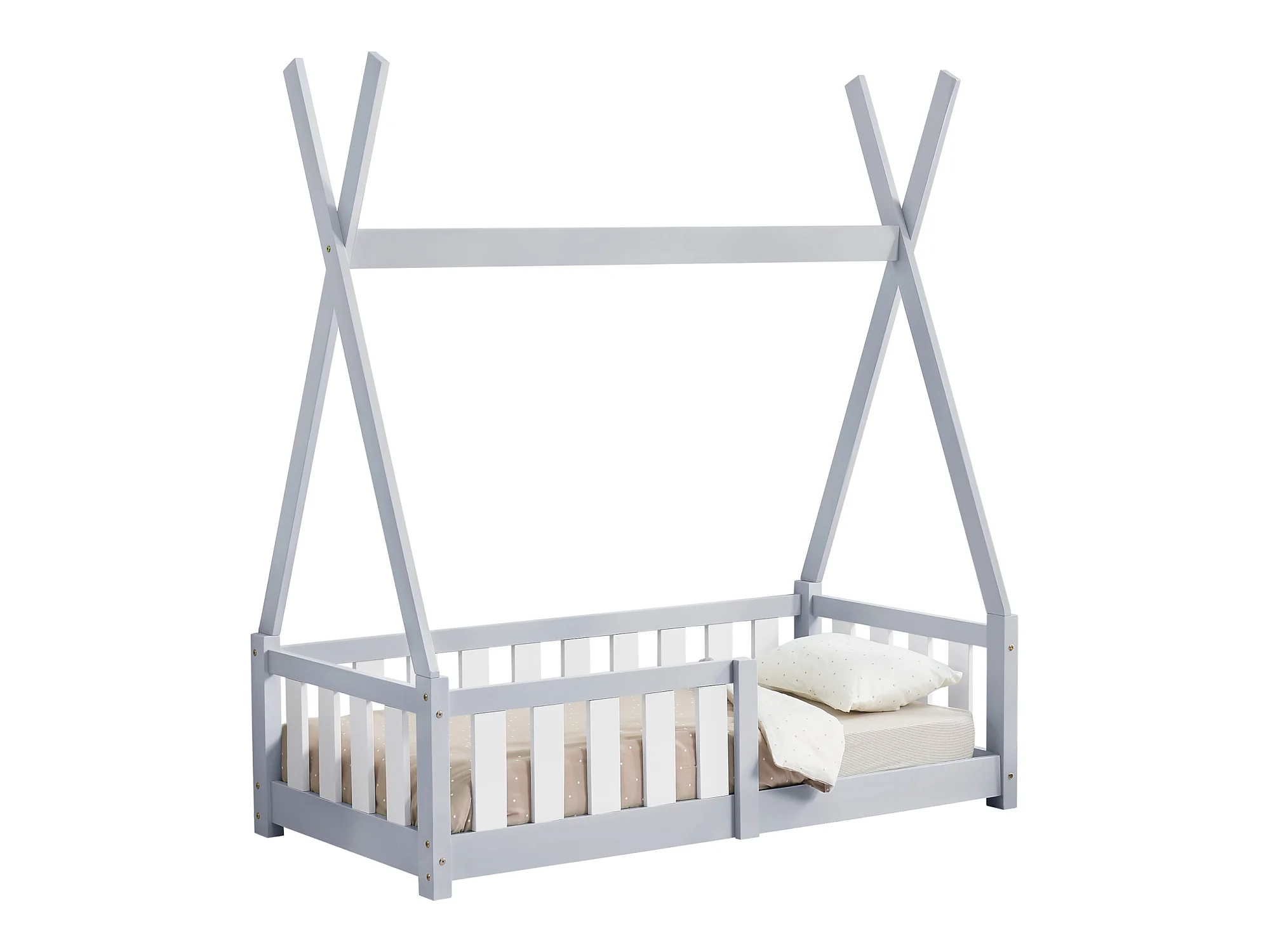 Lit Tipi pour Enfants Helsingborg avec Grille de Sécurité Pin 140 x 70 cm Gris Clair [en.casa]
