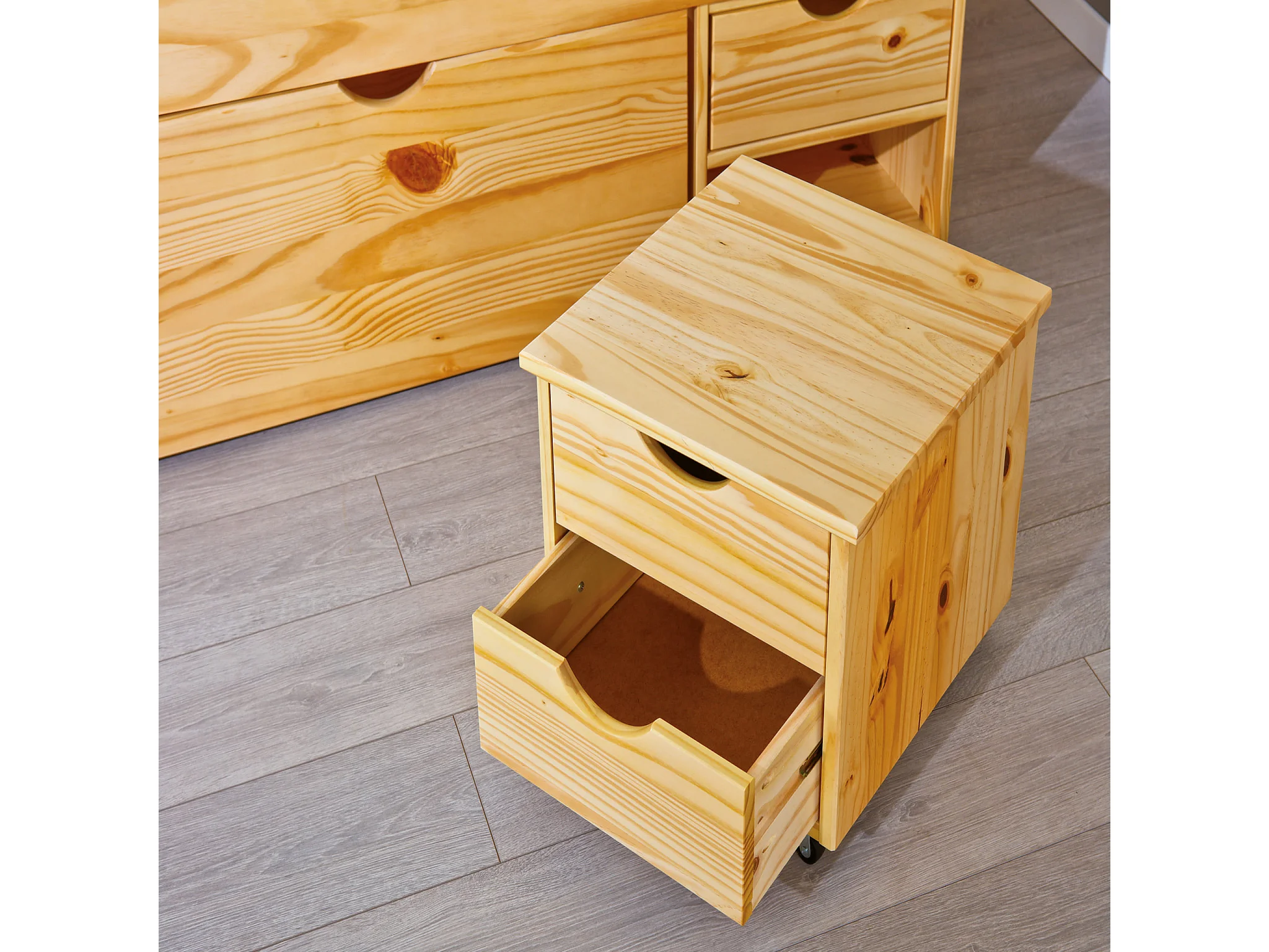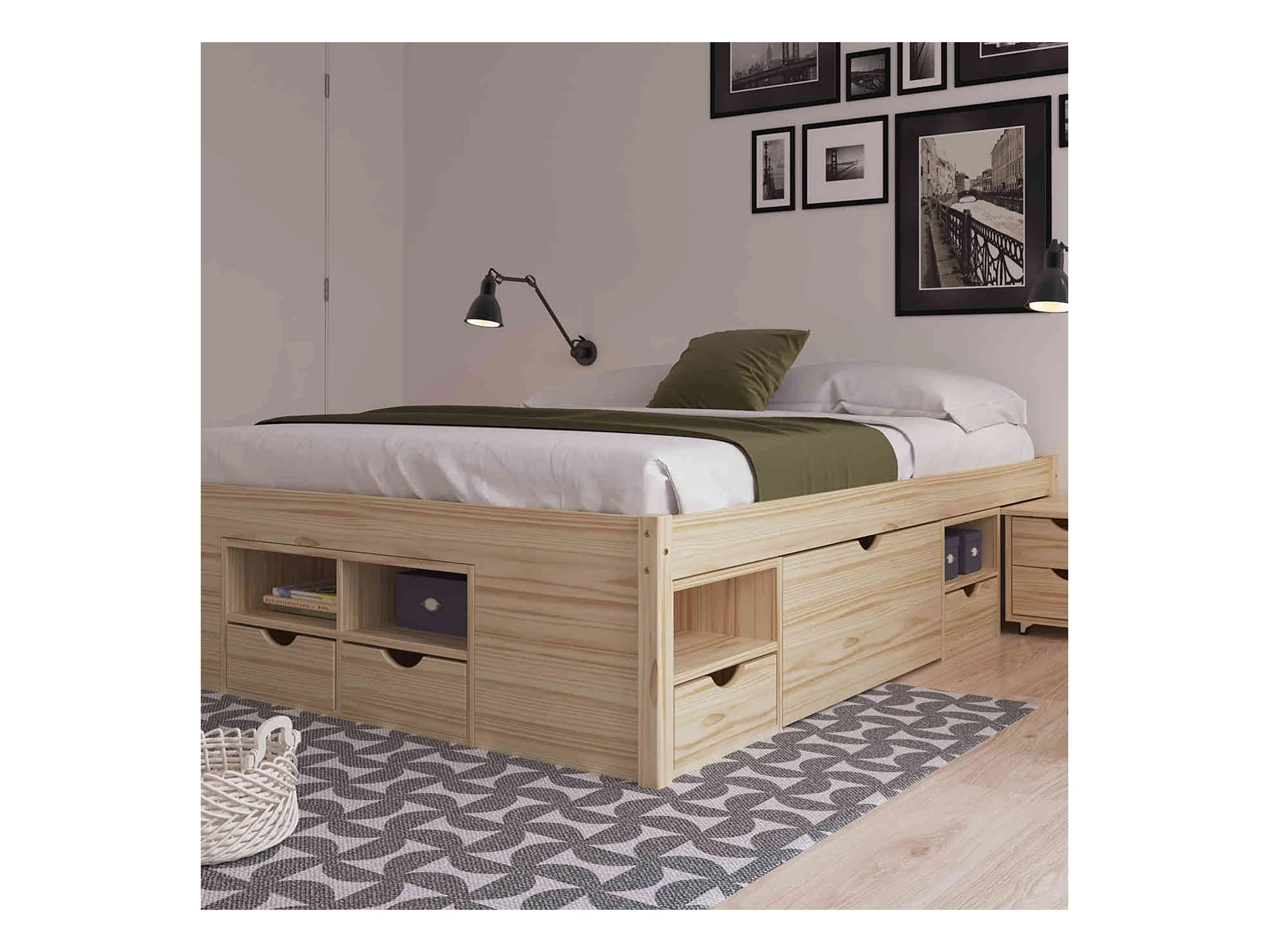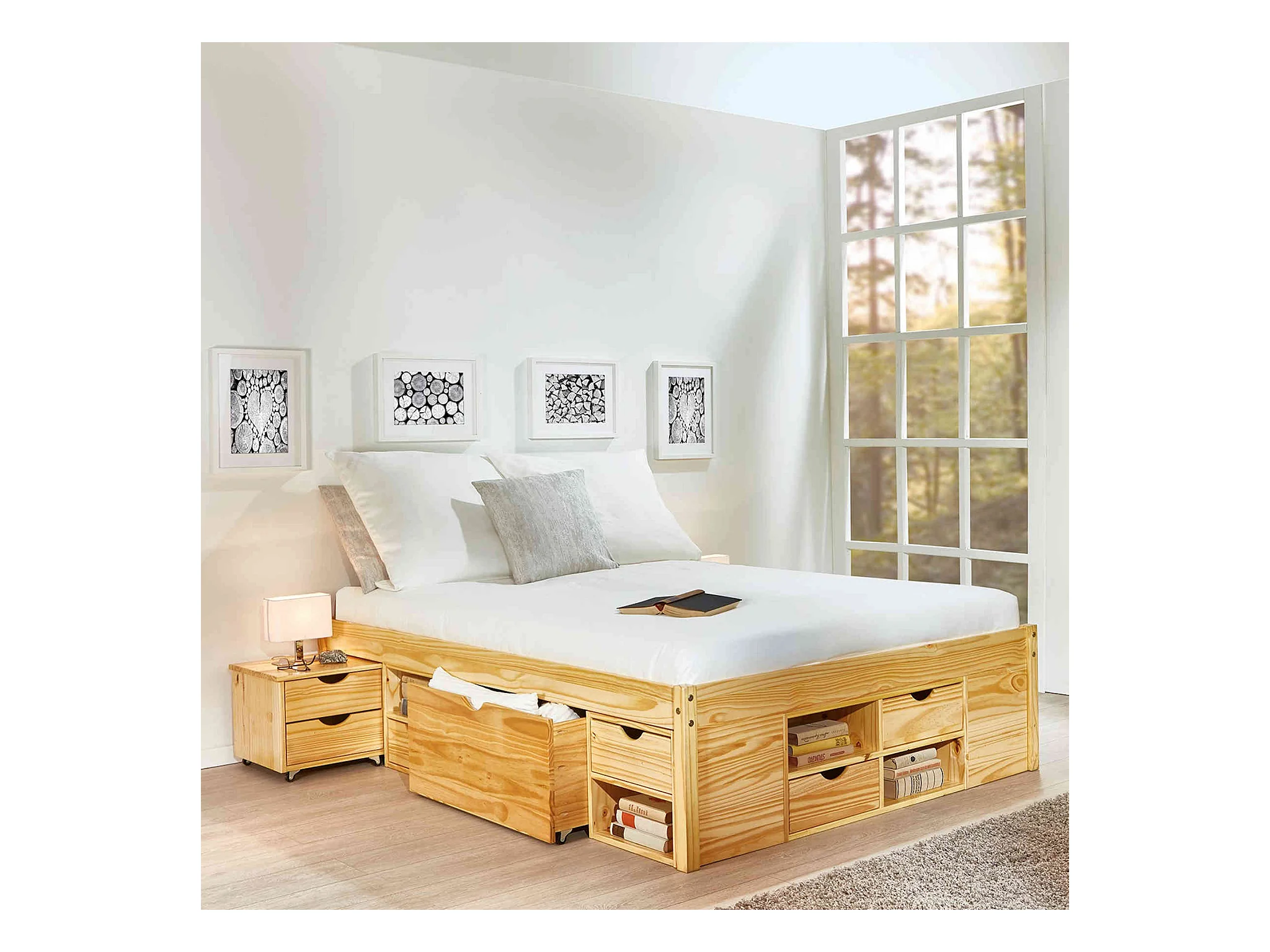 Lit tiroirs avec chevets intégrés en bois massif chêne clair 160x200 - LT12012