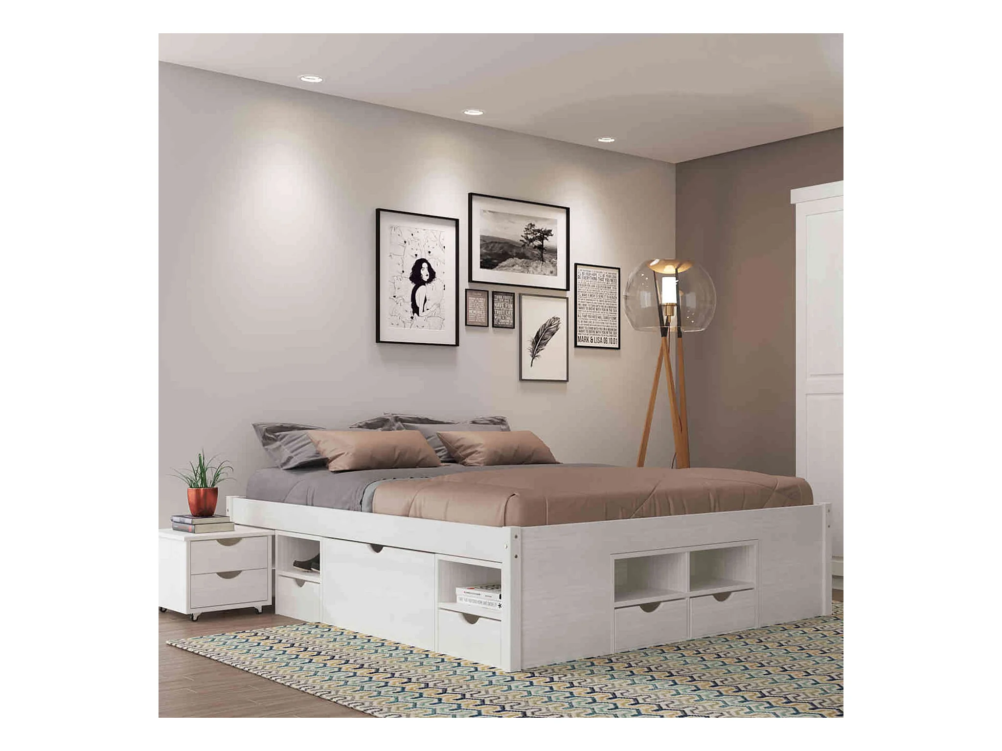 Lit tiroirs en bois massif blanc laqué 180x200 - LT12013