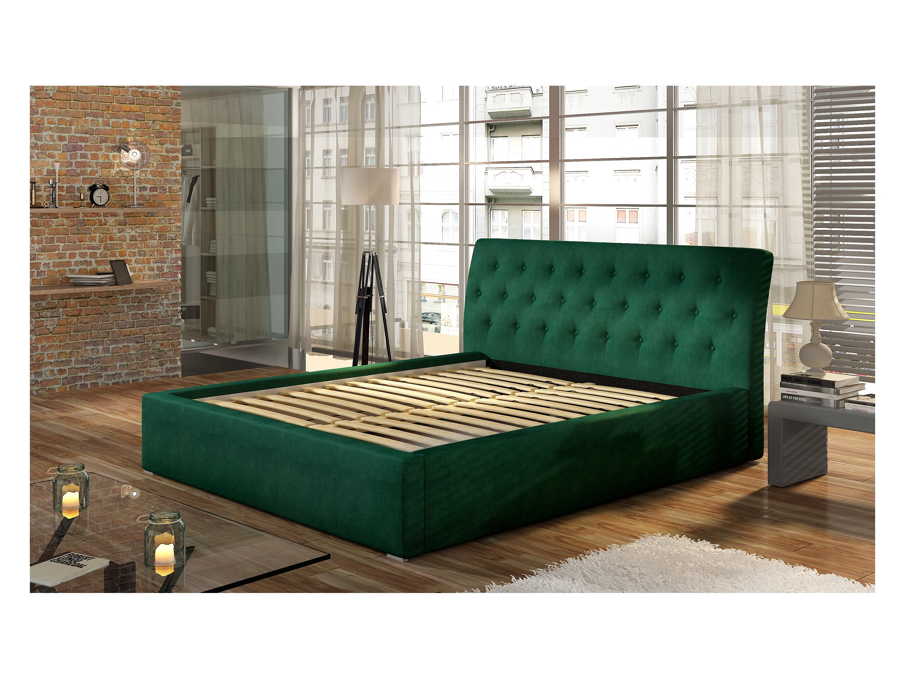 Lit tissu capitonné Venizia-Gris clair-180x200-Version avec sommier