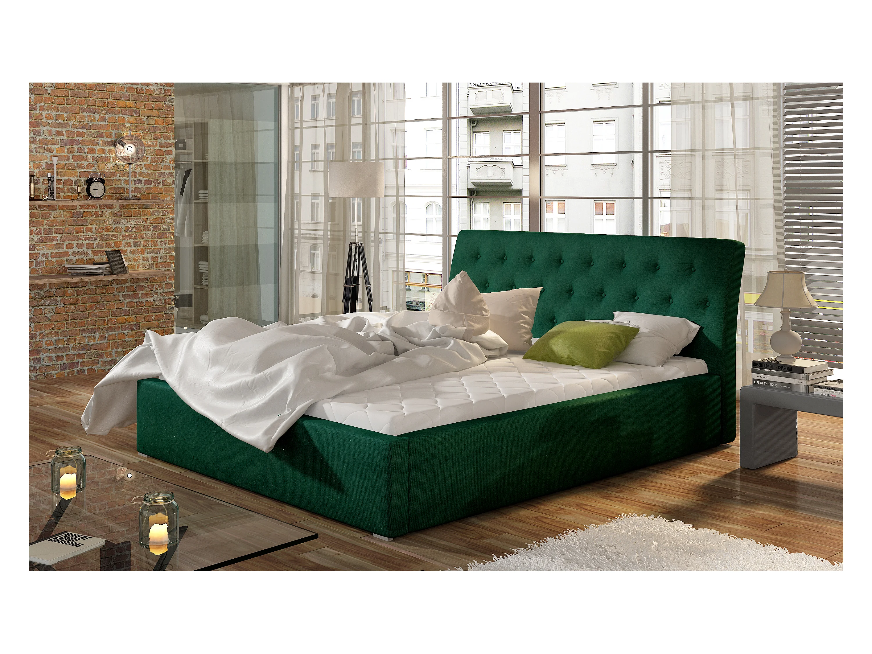 Lit velours capitonné Venizia-Couleur Vert épinard-180x200-Version avec sommier